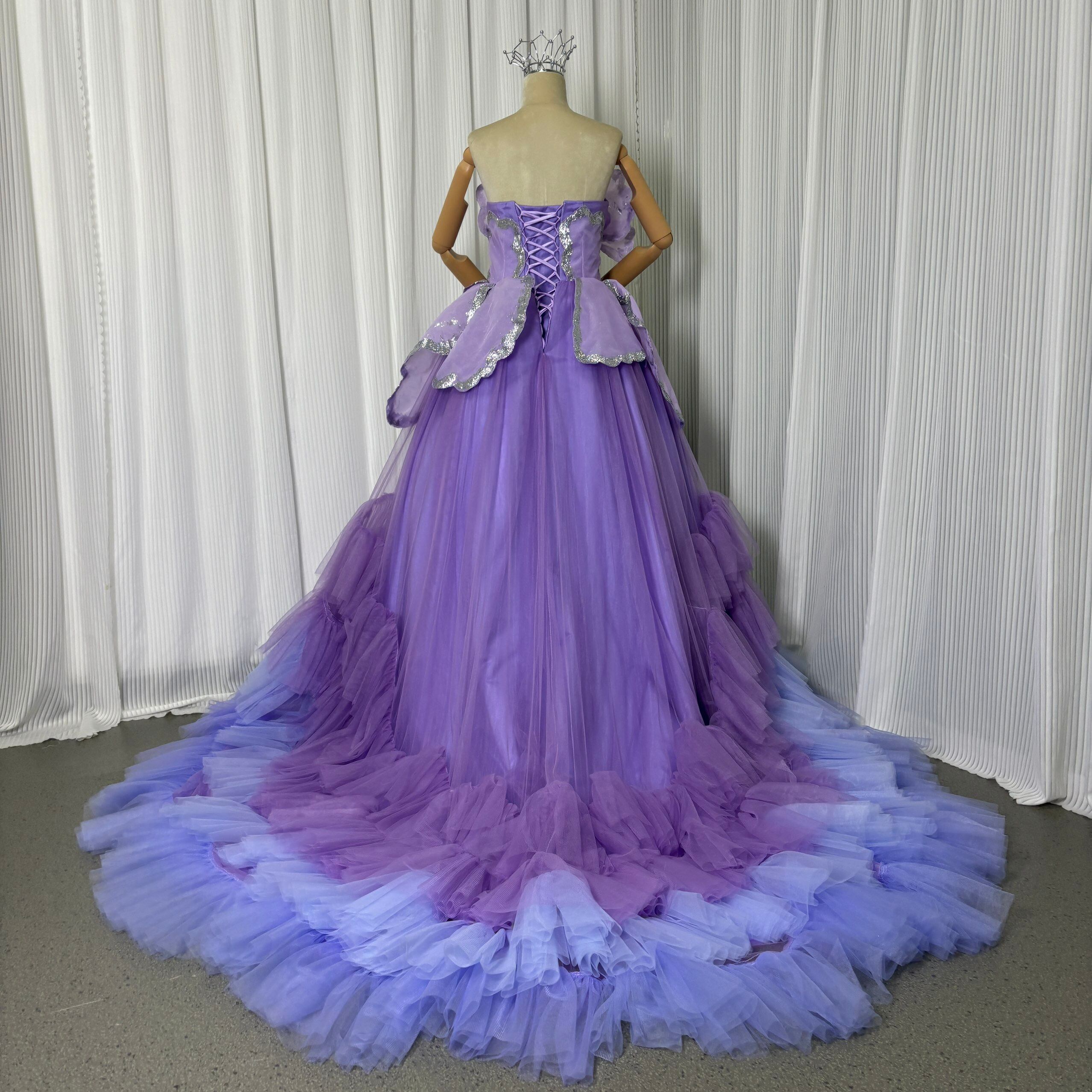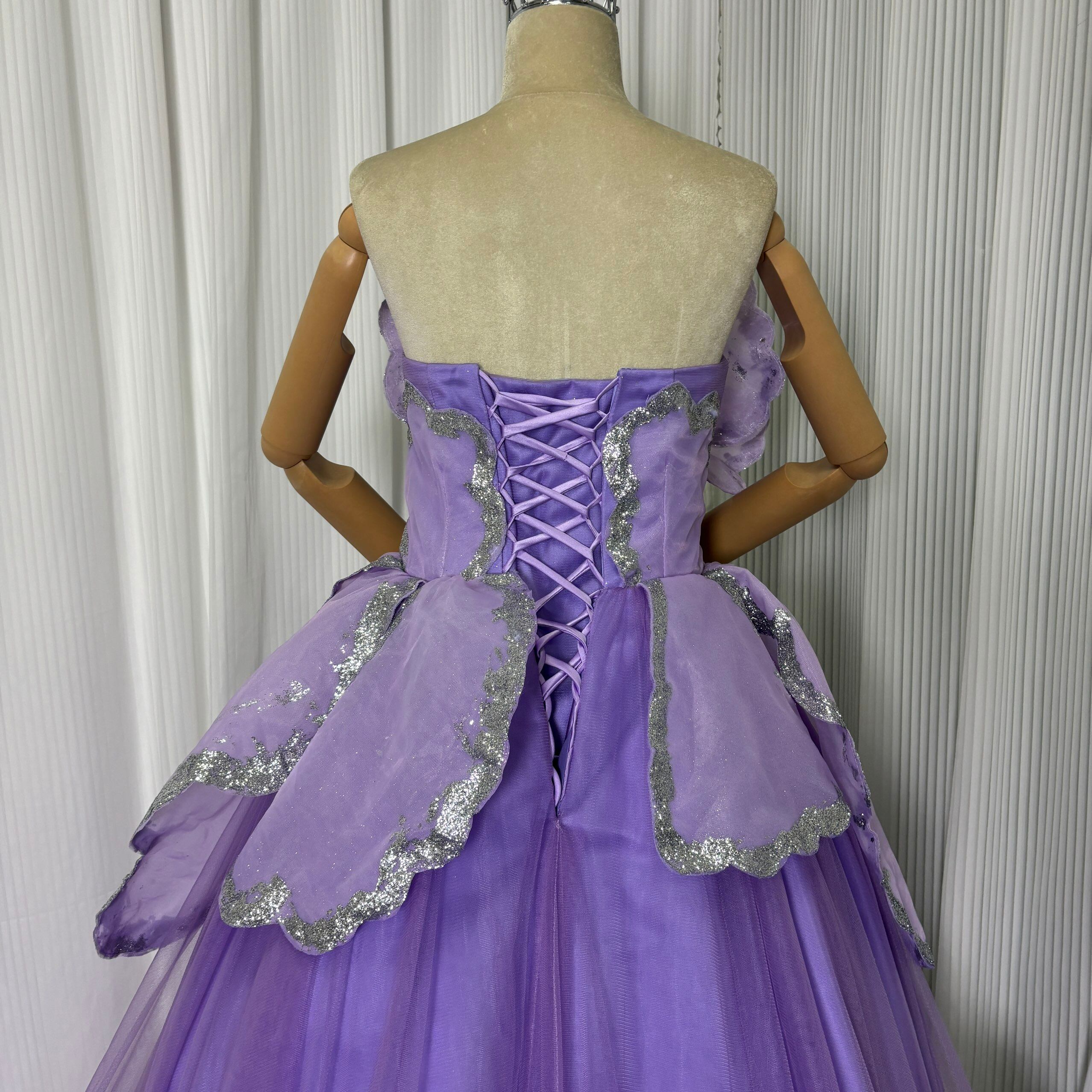 カラードレス パープル グラデーションドレス デザイン感 編み上げ プリンセスライン バラトレーン 花嫁