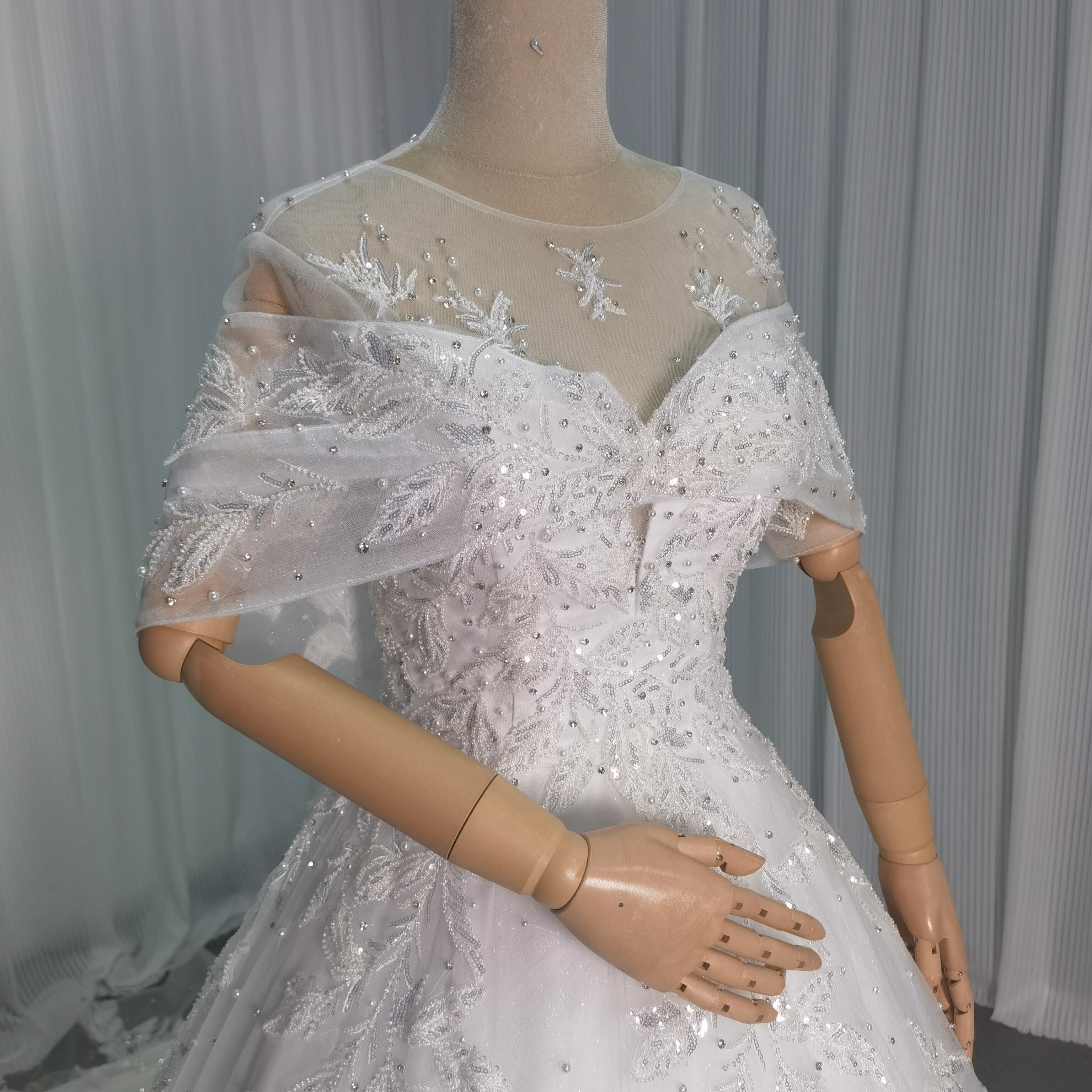 豪華!ウェディングドレス オフショルダー キラキラスパンコール 贅沢な総レース 背中見せ 拳式 披露宴