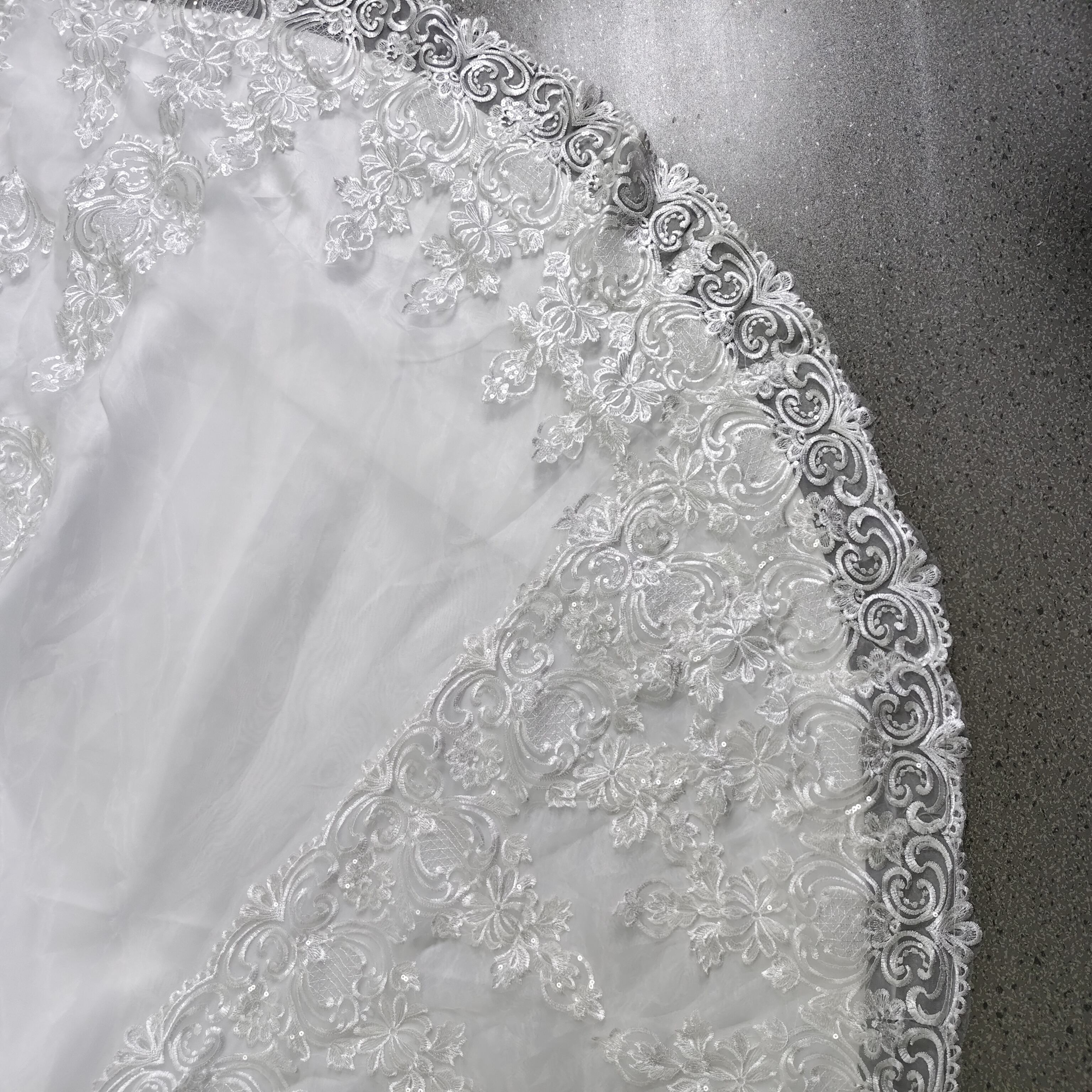 ウェディングドレス オフショルダー 長袖 上品レース キラキラスパンコール 華やかなトレーン プリンセスライン 拳式