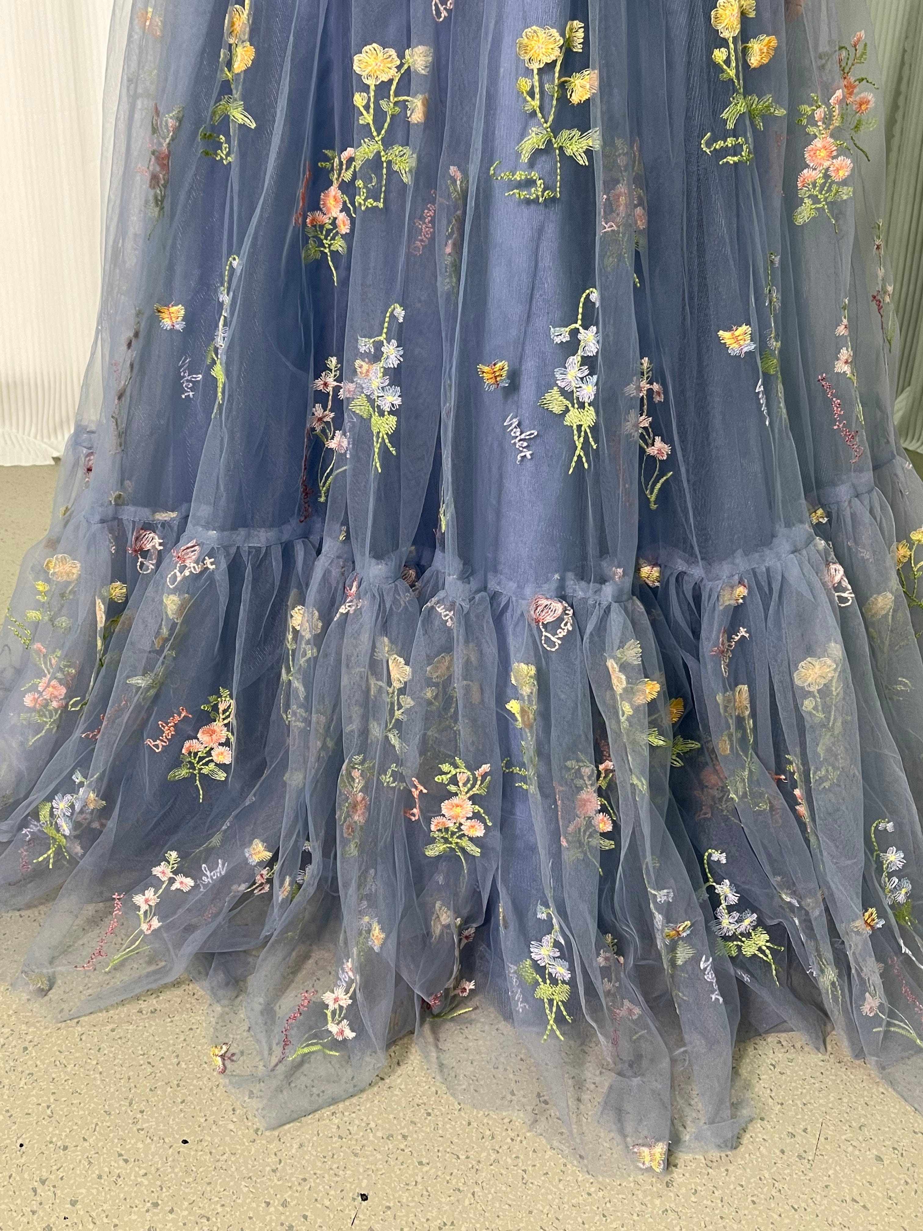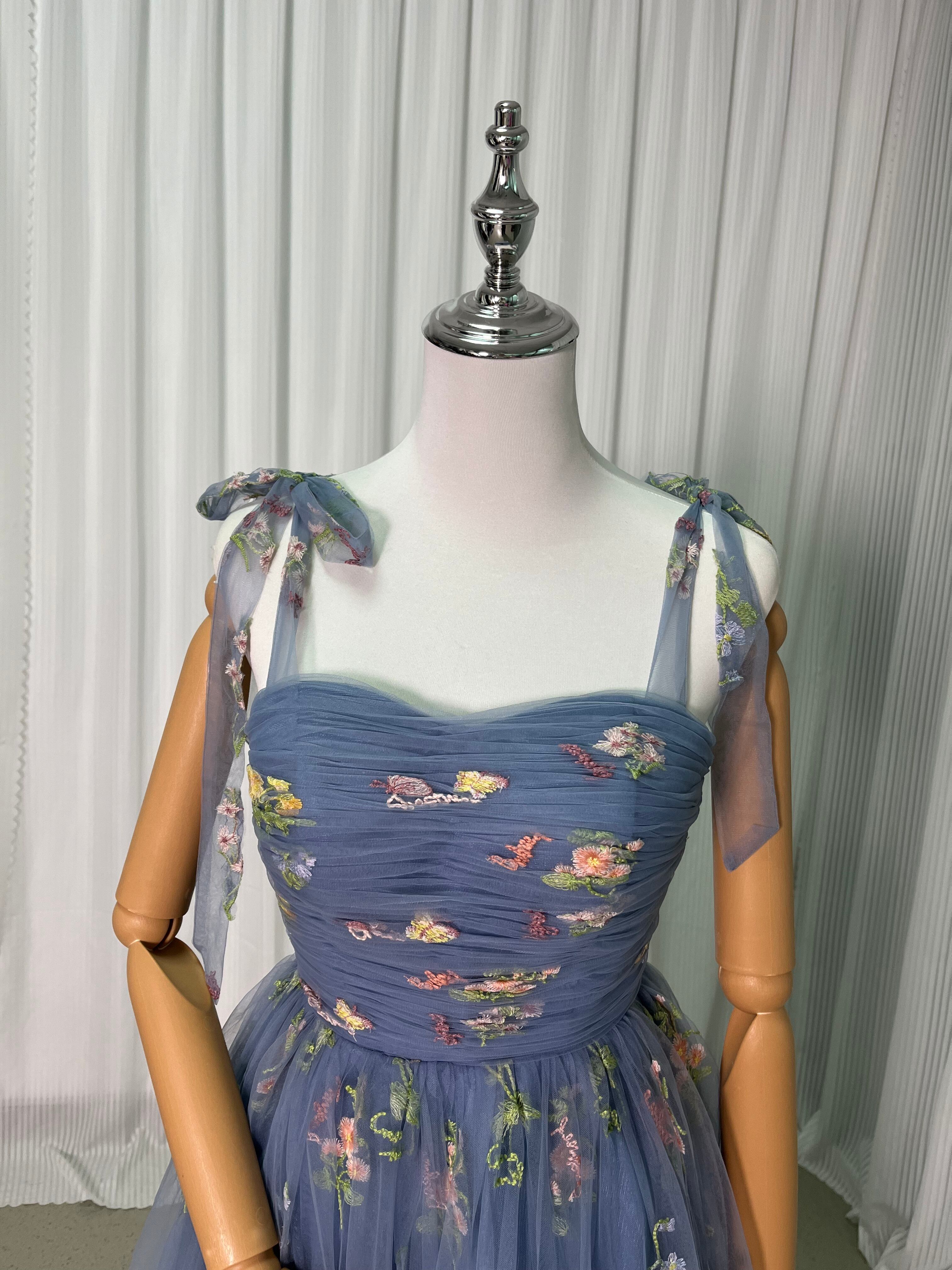 パーティードレス 可愛い 花の刺繍 キャミソール ソフトチュール ロング 編み上げ 二次会/合コン/デート