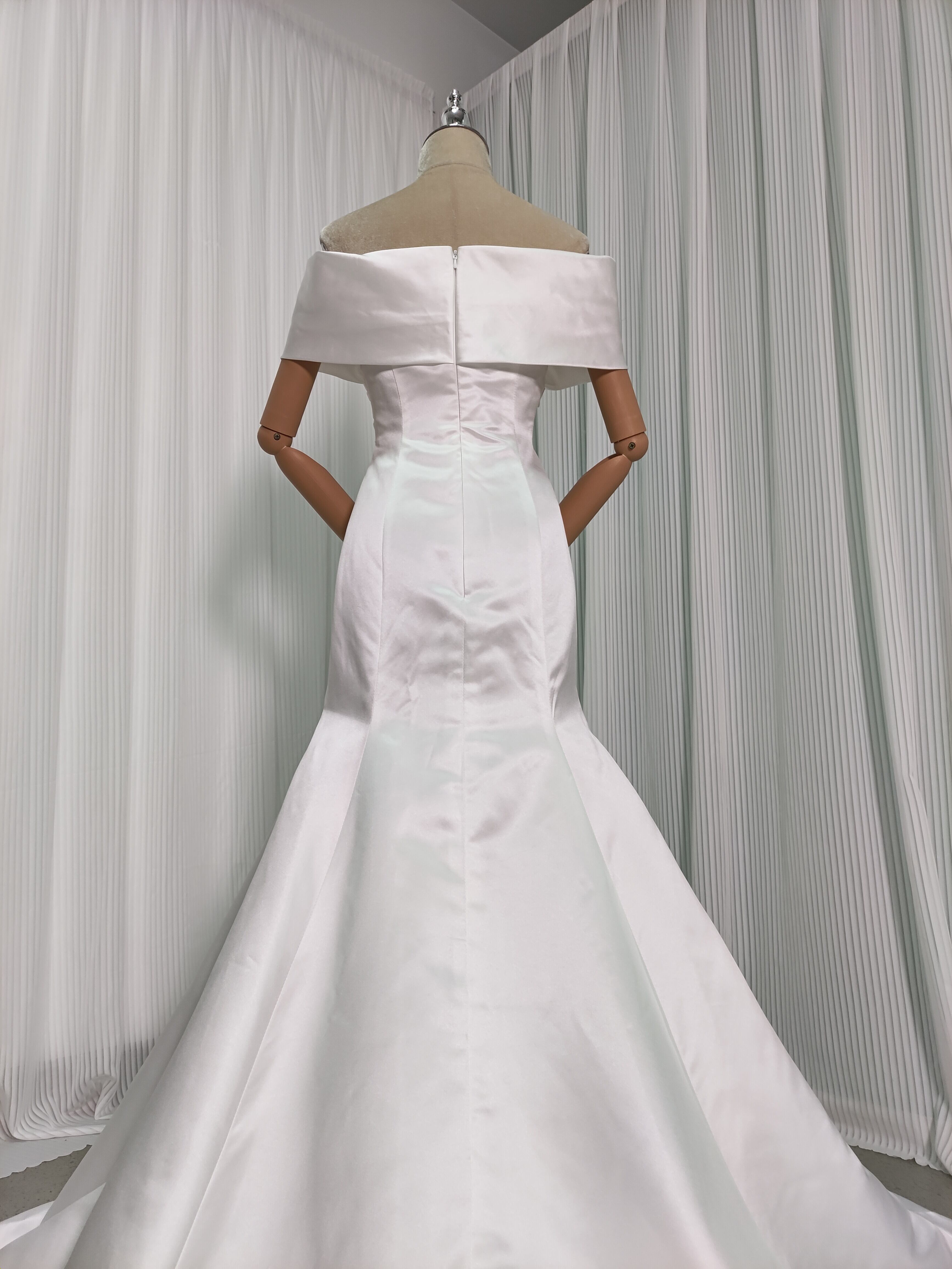 ウェディングドレス オフショルダー ファスナー マーメイドライン 結婚式 光沢サテン エレガント