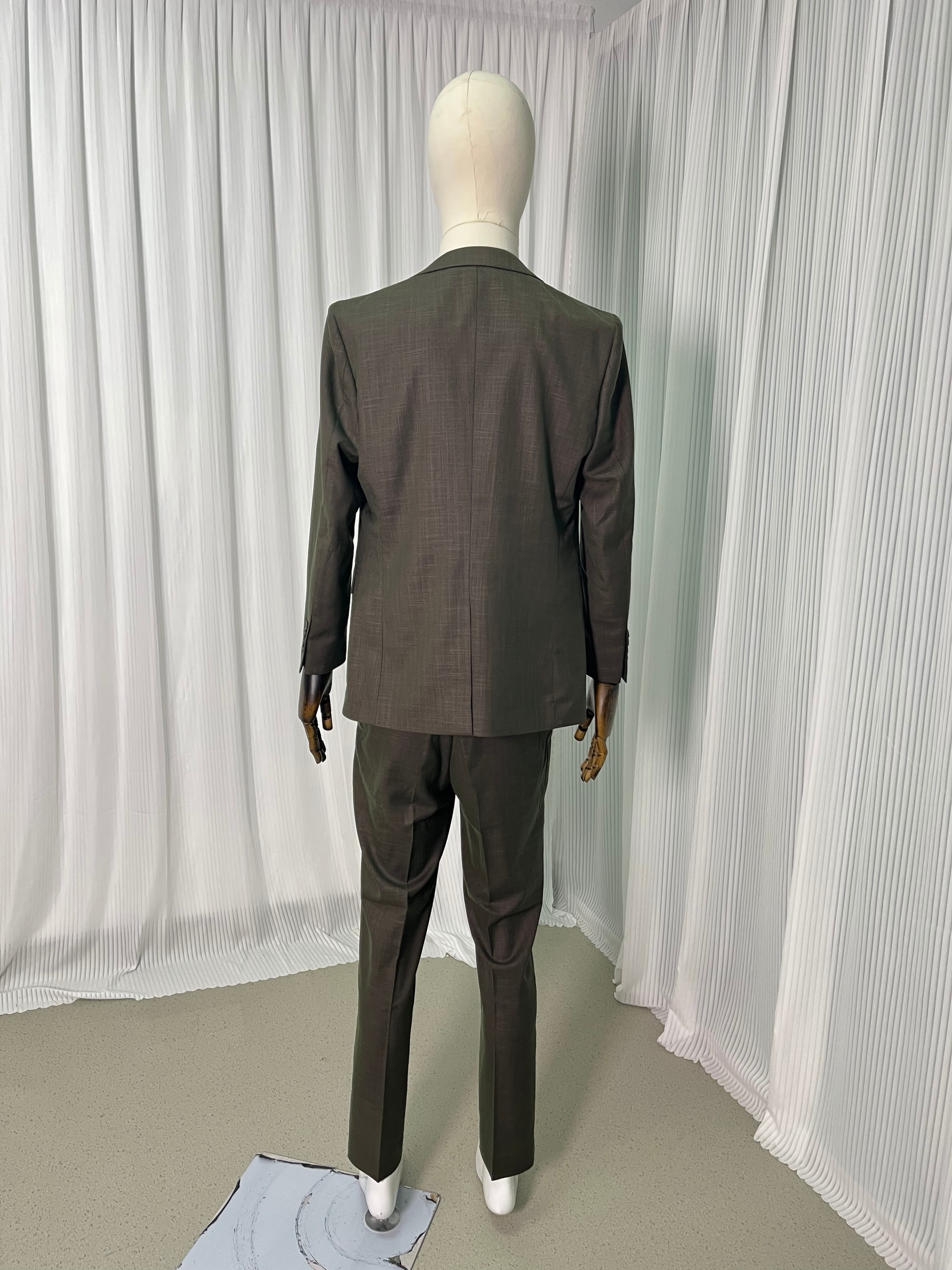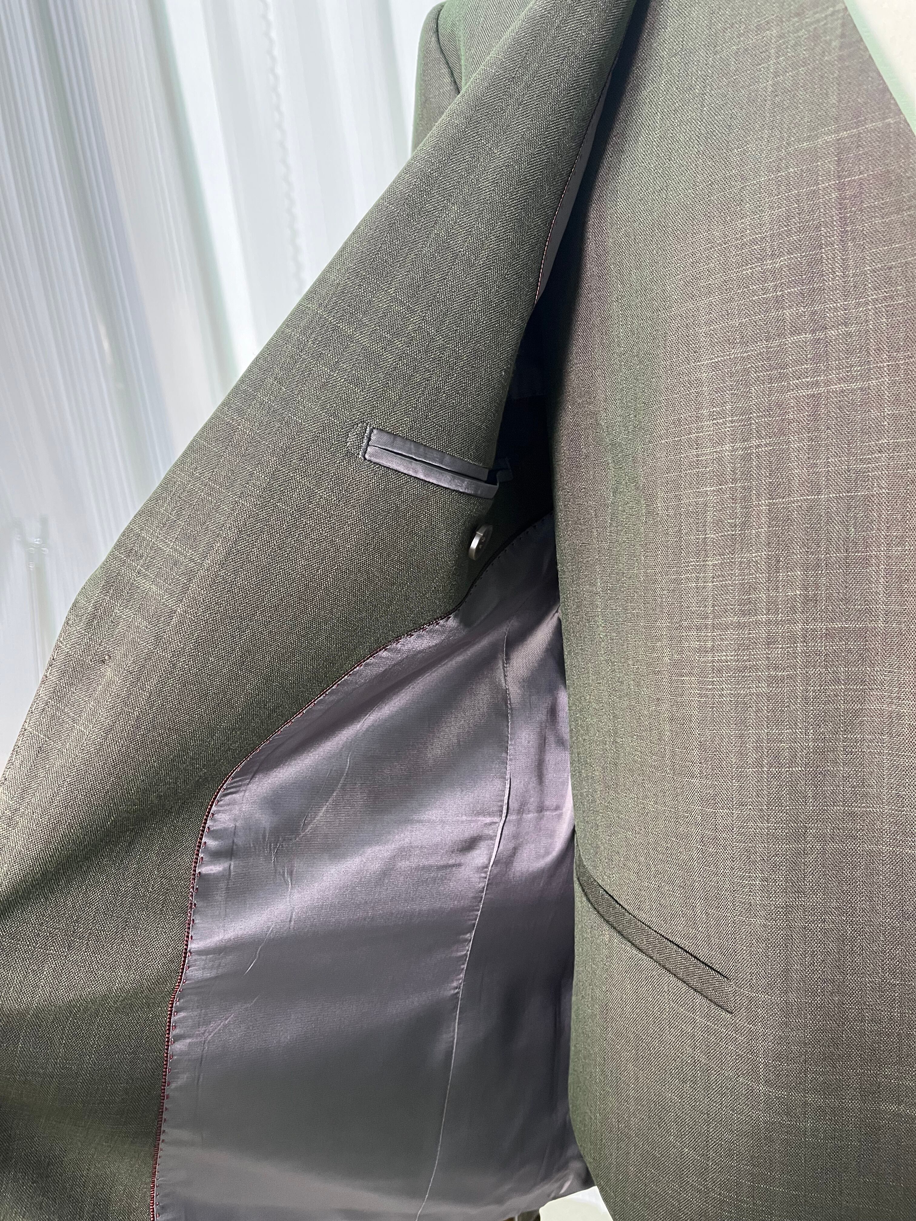 ①デザインオーダー:生地、ラペル形状(ノッチド/ピークド)、ボタンの数、内張り生地までオーダー可能です。事前にご相談くださいませ。
