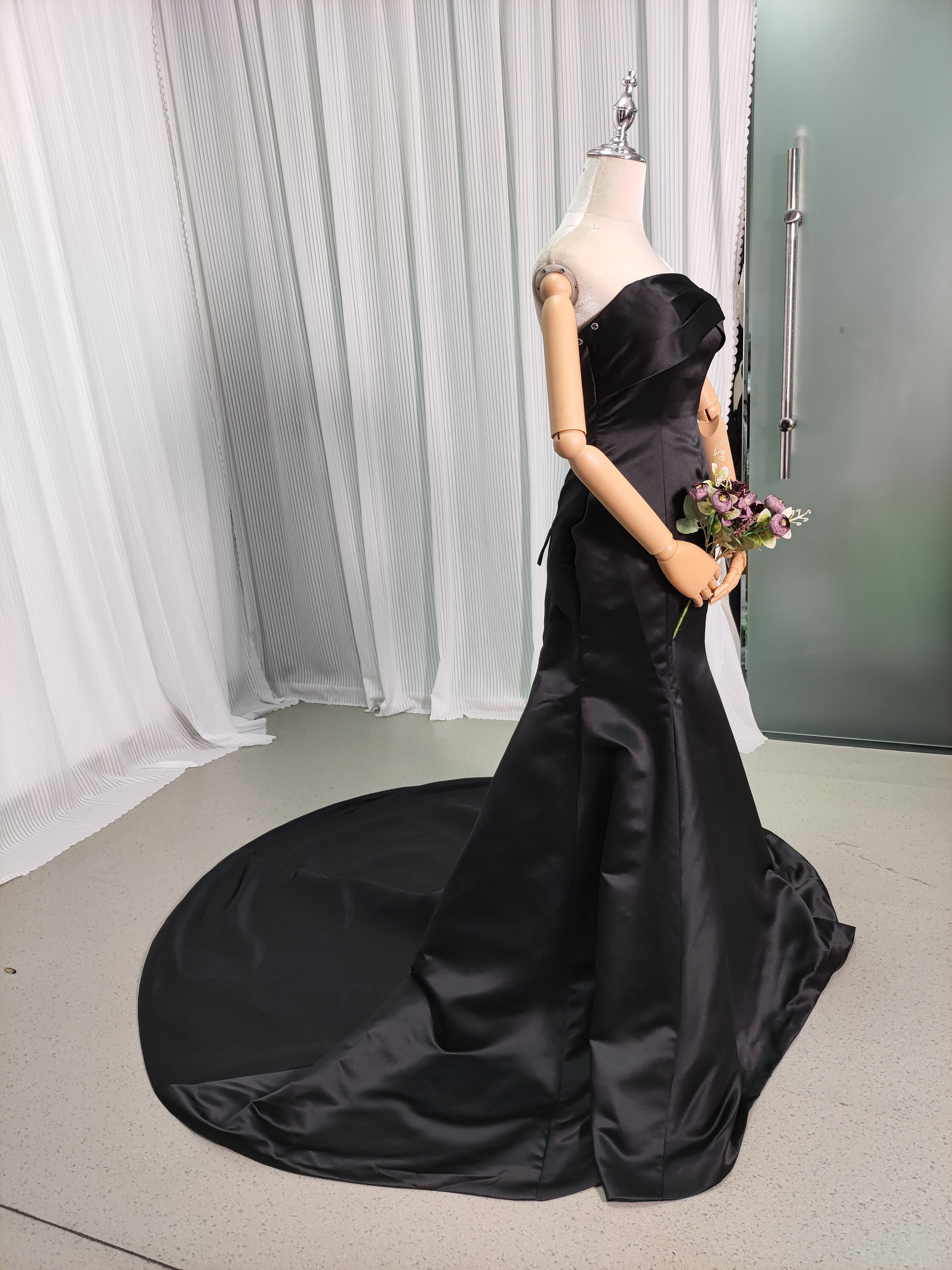 パーティードレス ブラック ベアトップ マーメイドライン 編み上げ ファスナー エレガント 前撮り