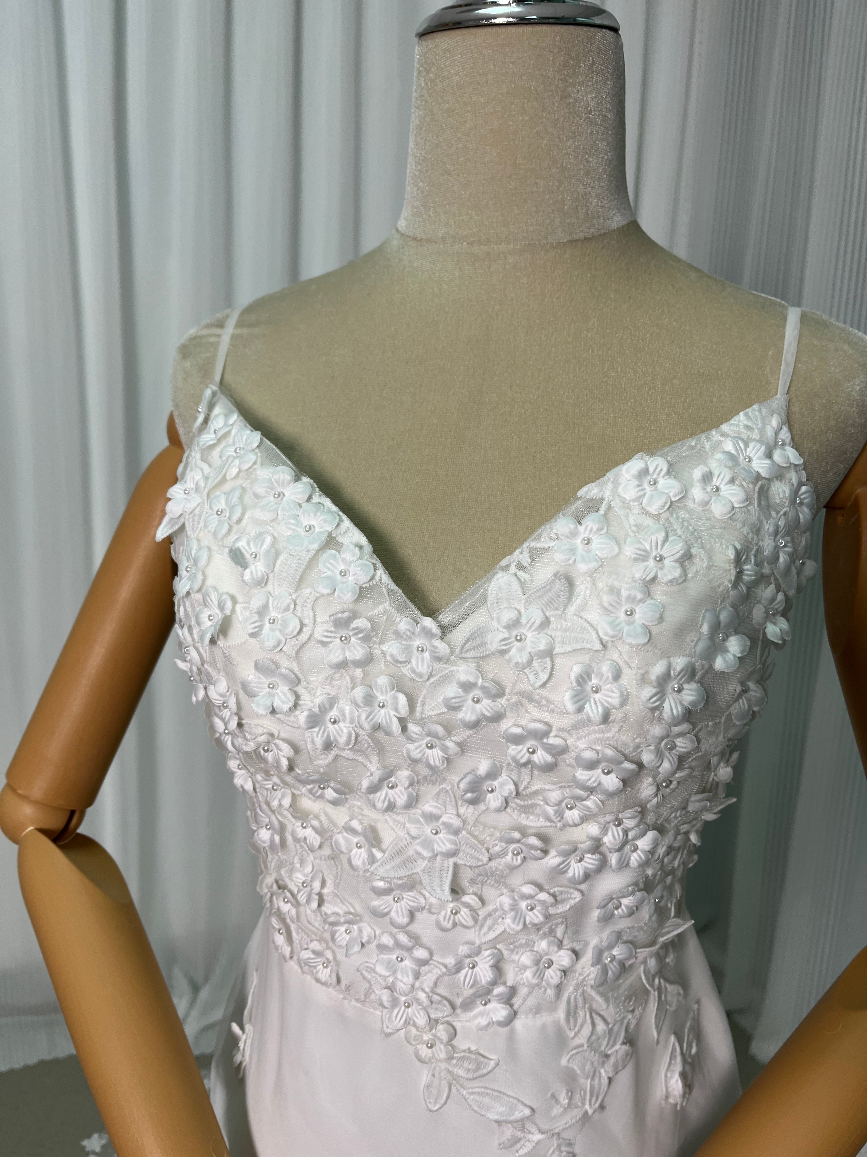 美品!ウエディングドレス リーフ刺繍 マーメイドライン 華やかなトレーン 披露宴/挙式