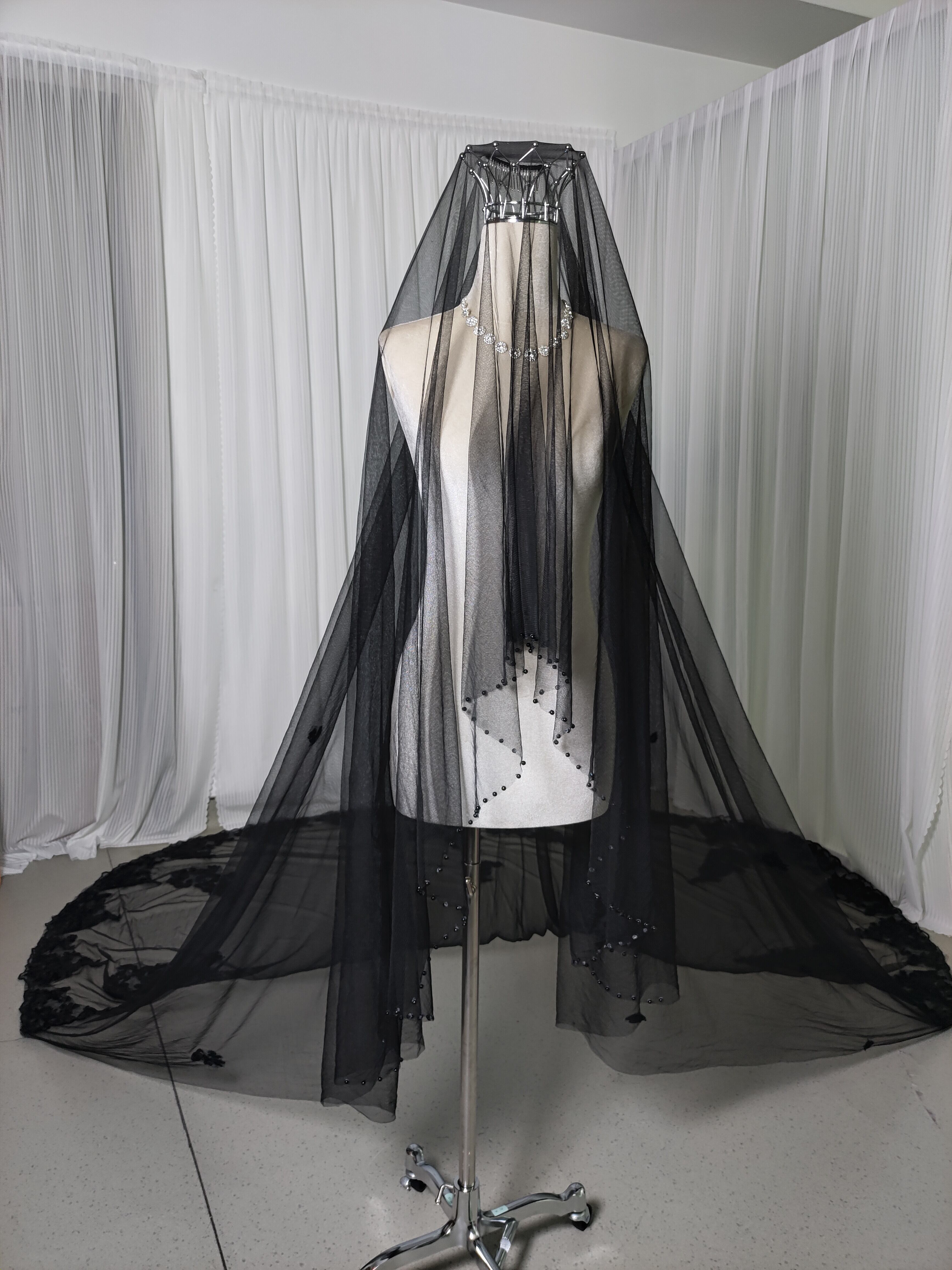 ロングベール ブラック 魅惑の花レース クラシカル ビーズ エレガント ハンドメイド 前撮り