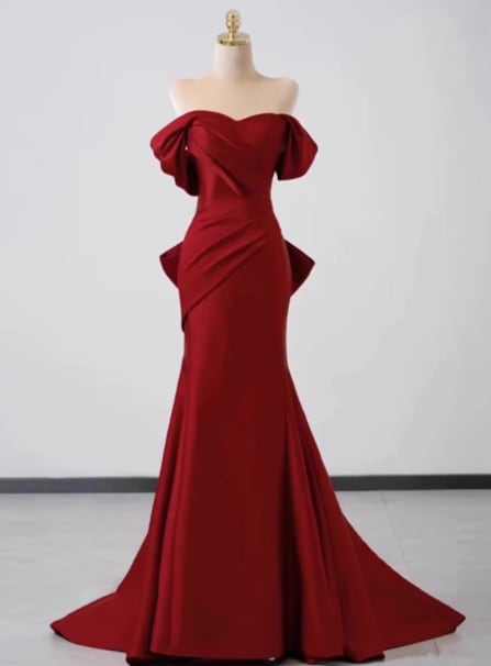 カラードレス ボルドー色 オフショルダー マーメイドライン 豪華なバックリボン 編み上げ 披露宴
