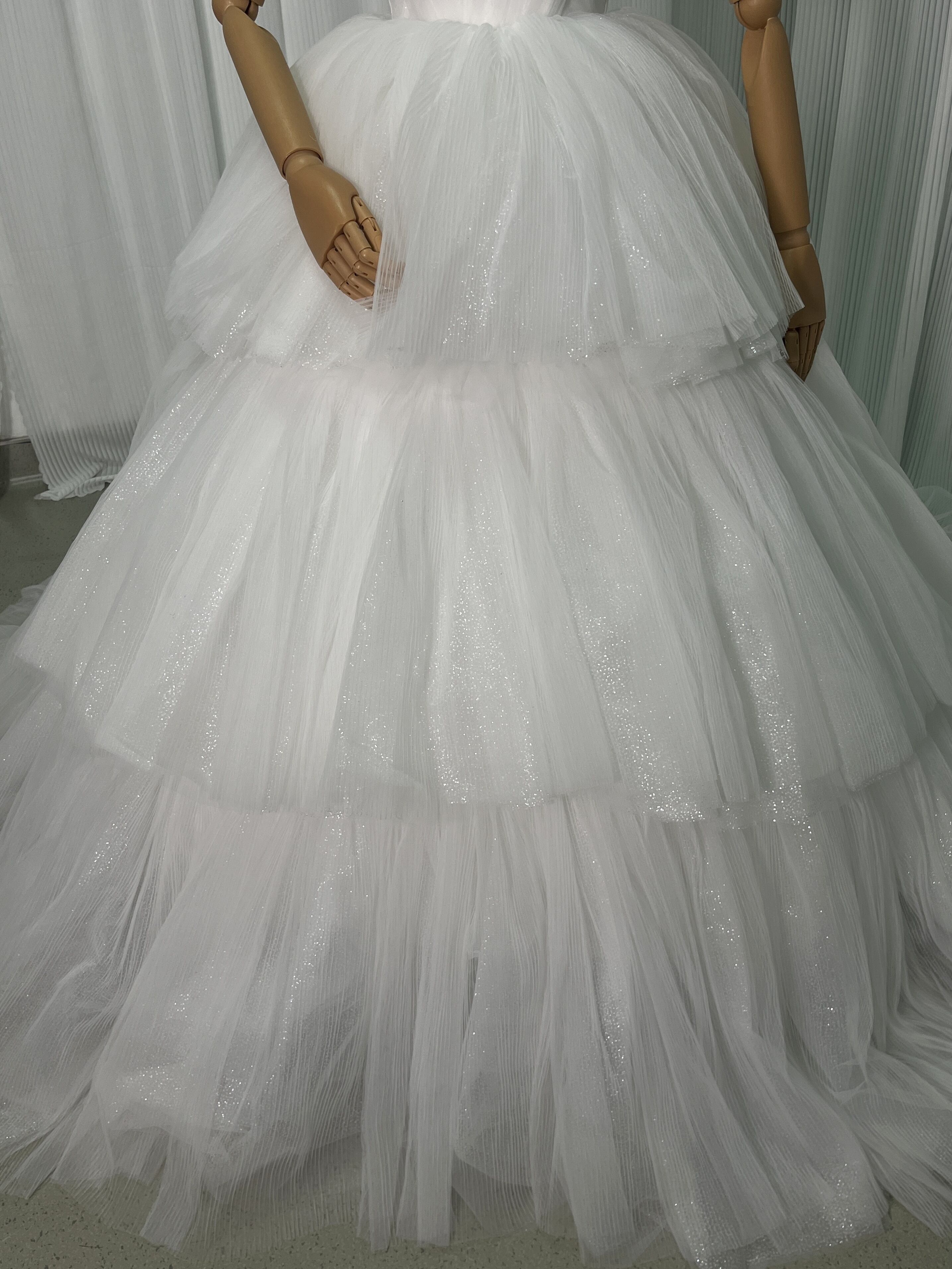 ウェディングドレス キラキラ 柔らかく重ねたチュールスカート Vネック ボリュームドレス 結婚式