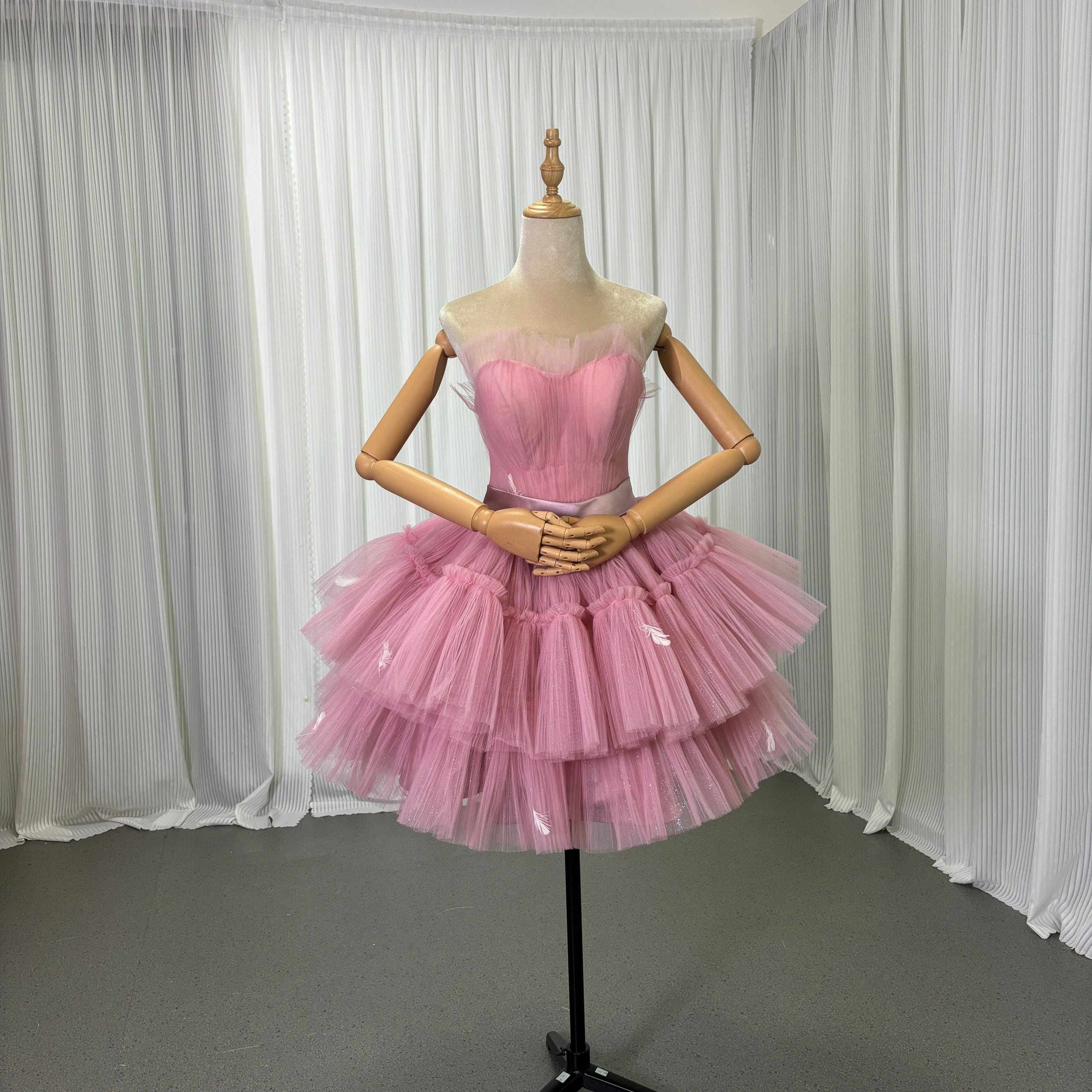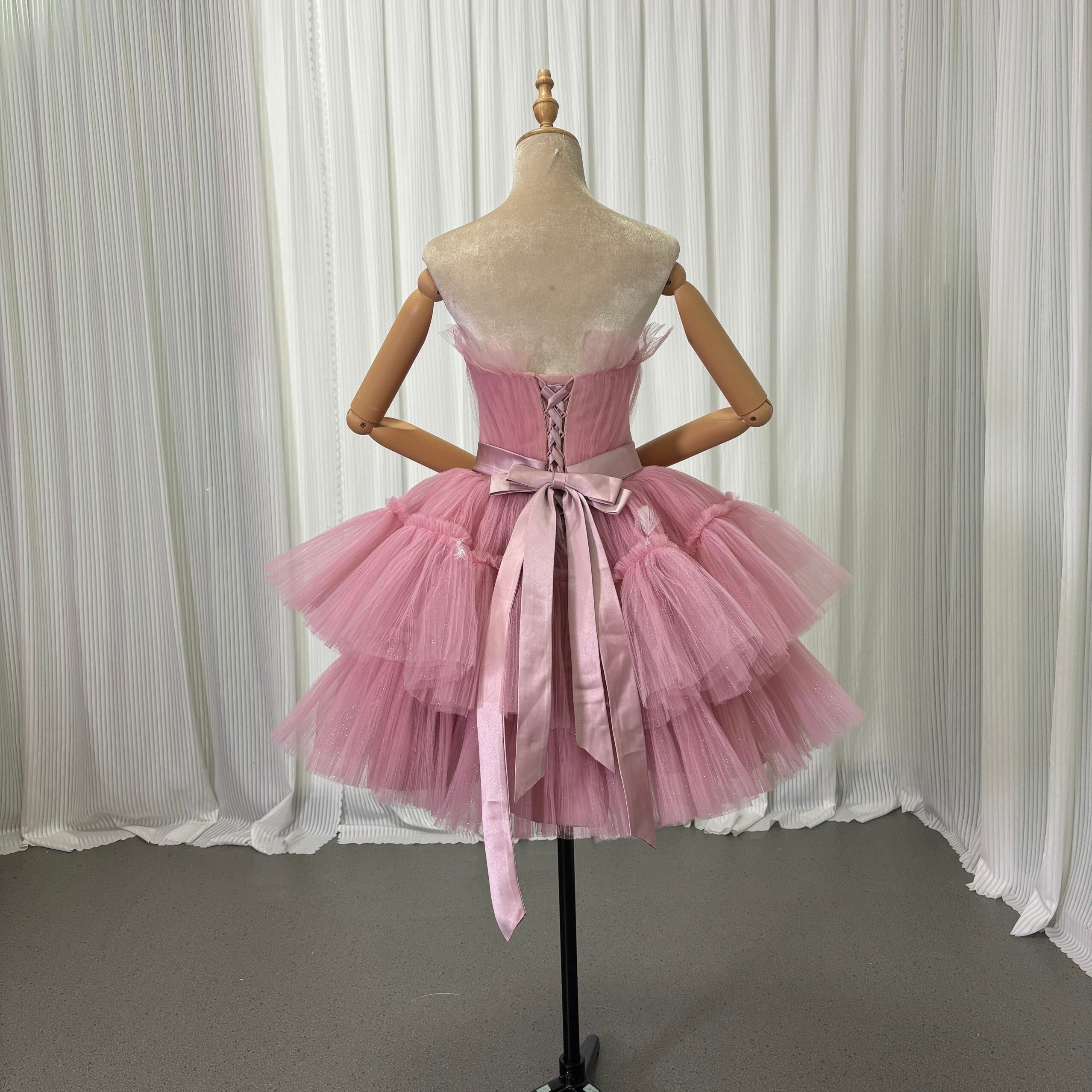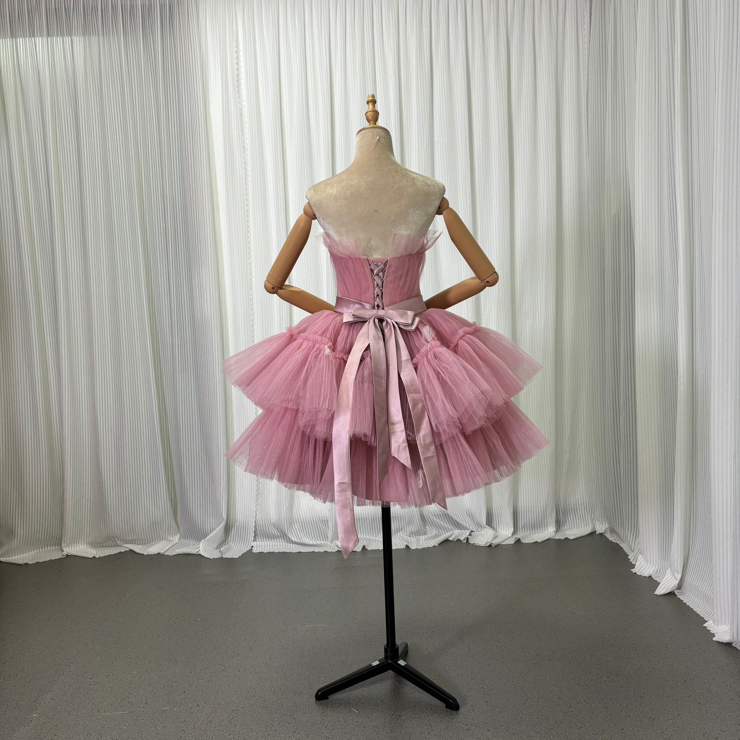 カラードレス ピンク ミニドレス プリーツスカート キラキラドレス フェザー フレアスカート 優雅なシルエット 可愛い