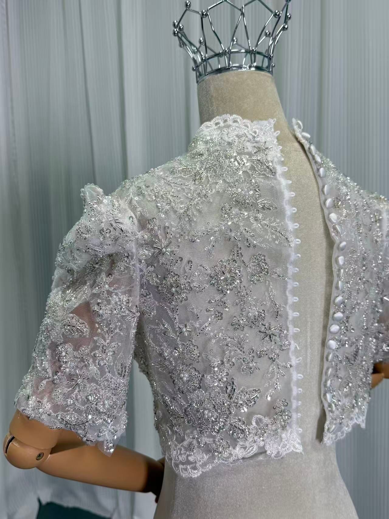 フランス風 ボレロ シークインチュール 半袖 くるみボタン オーダー可能 結婚式