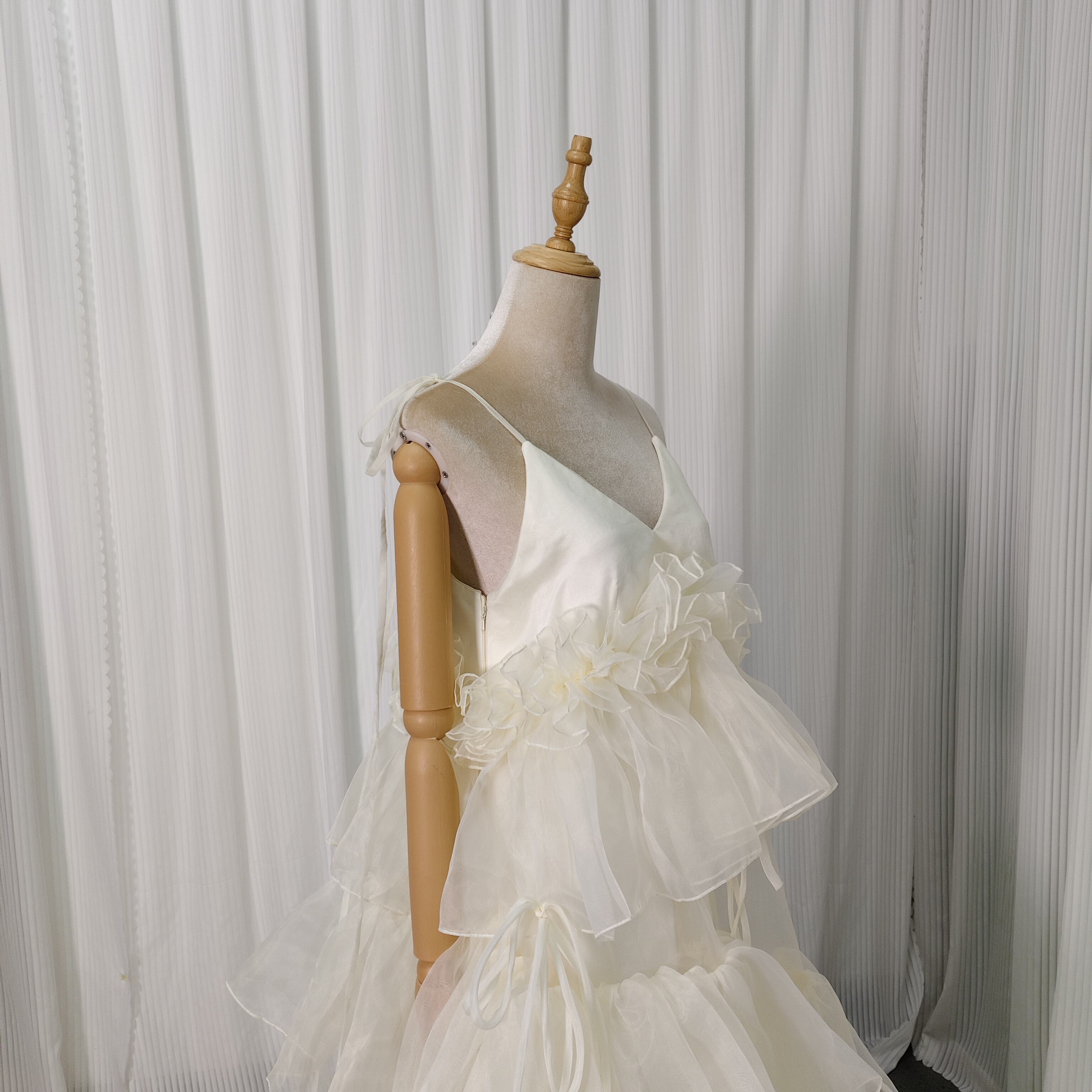 人気上昇!ウェディングドレス キャミソール シャンパン色 ラッフルフリル 可愛い 前撮り