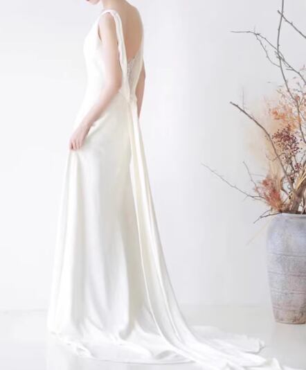 ウェディングドレス Vネック 美しいバックレース 優雅なシルエット ミニトレーン 結婚式/披露宴
