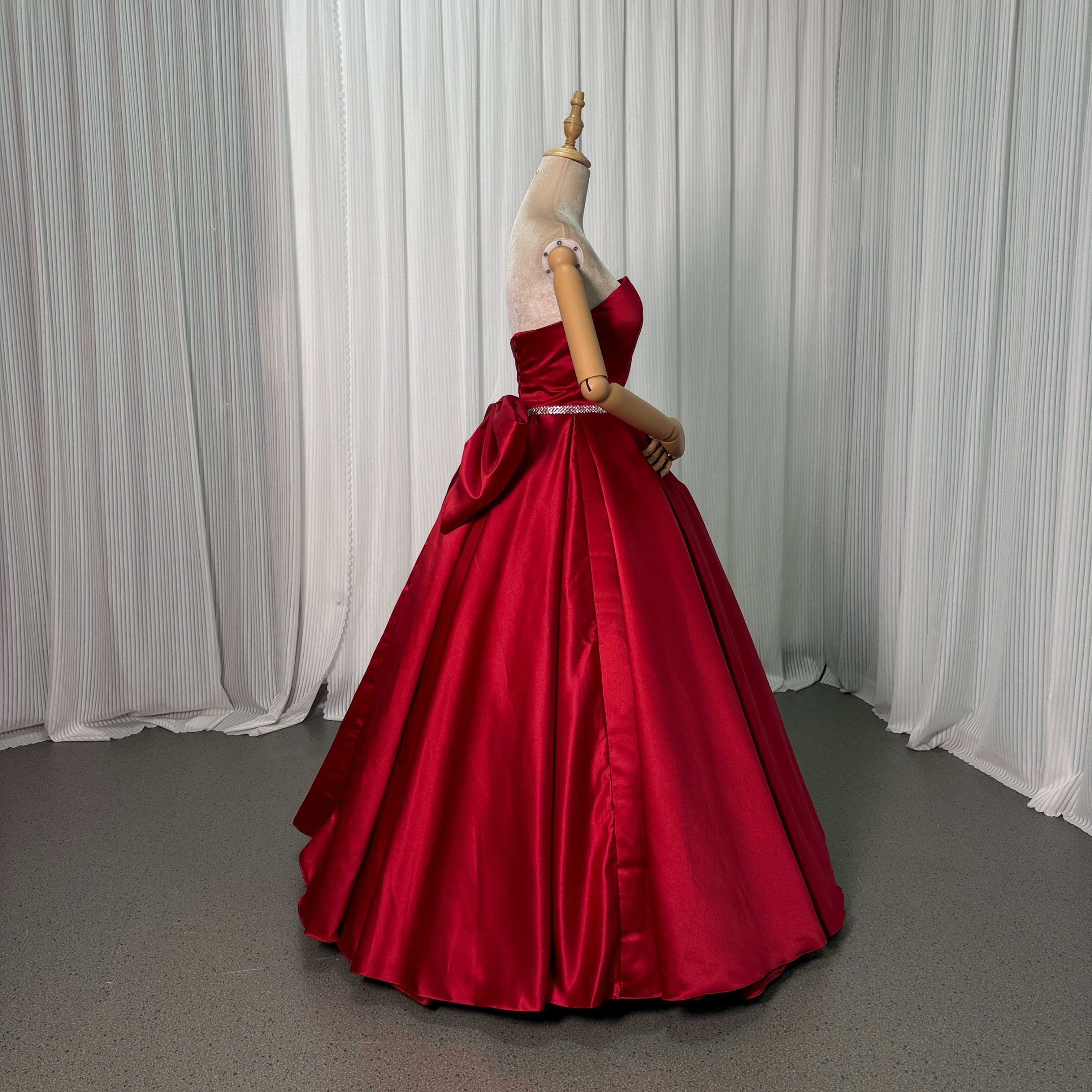カラードレス ボルドー色 ベアトップ ロング 豪華なバックリボン 謝恩会/パーティー
