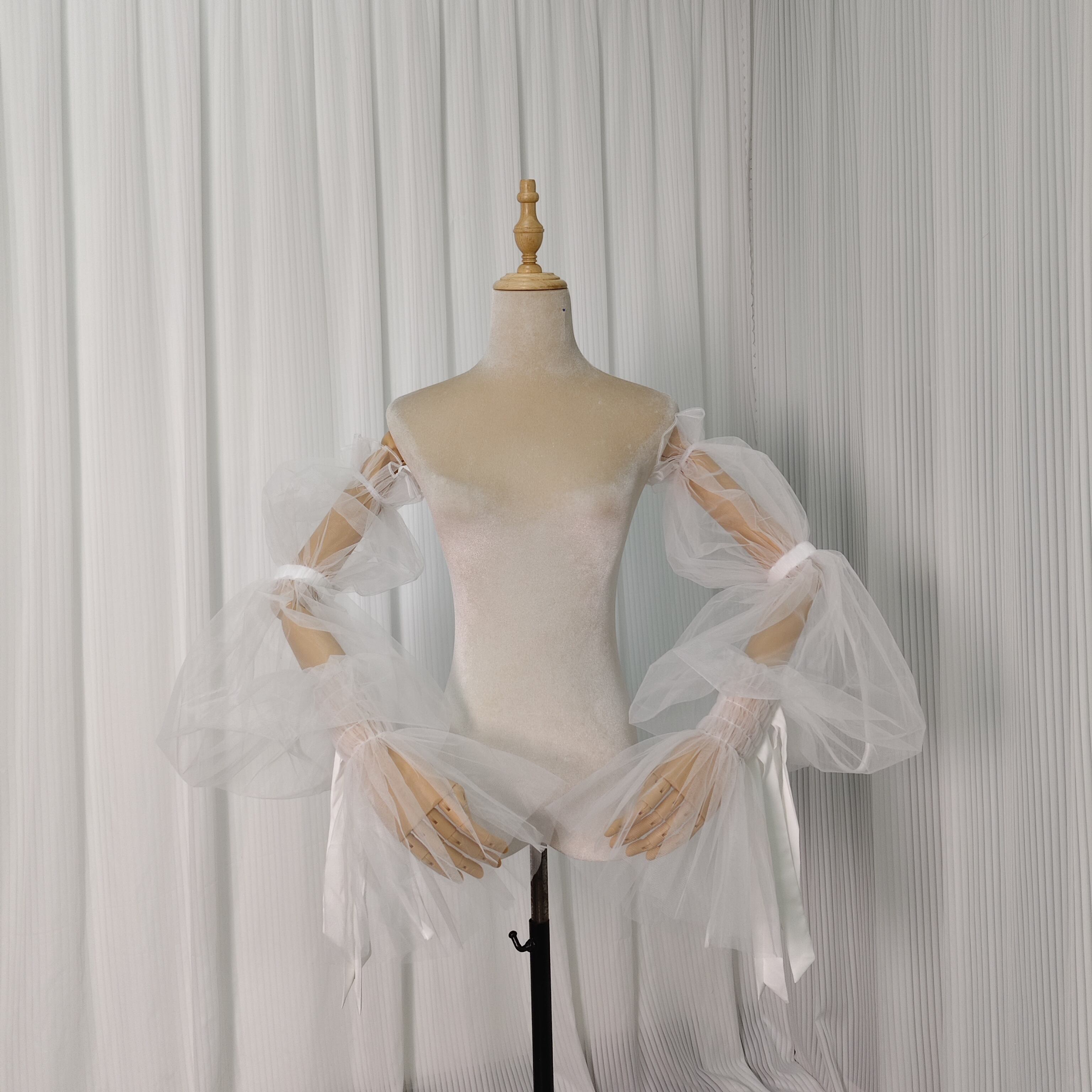シースルー袖 オフホワイト 取り外し袖 リボン ストレッチ 結婚式/披露宴