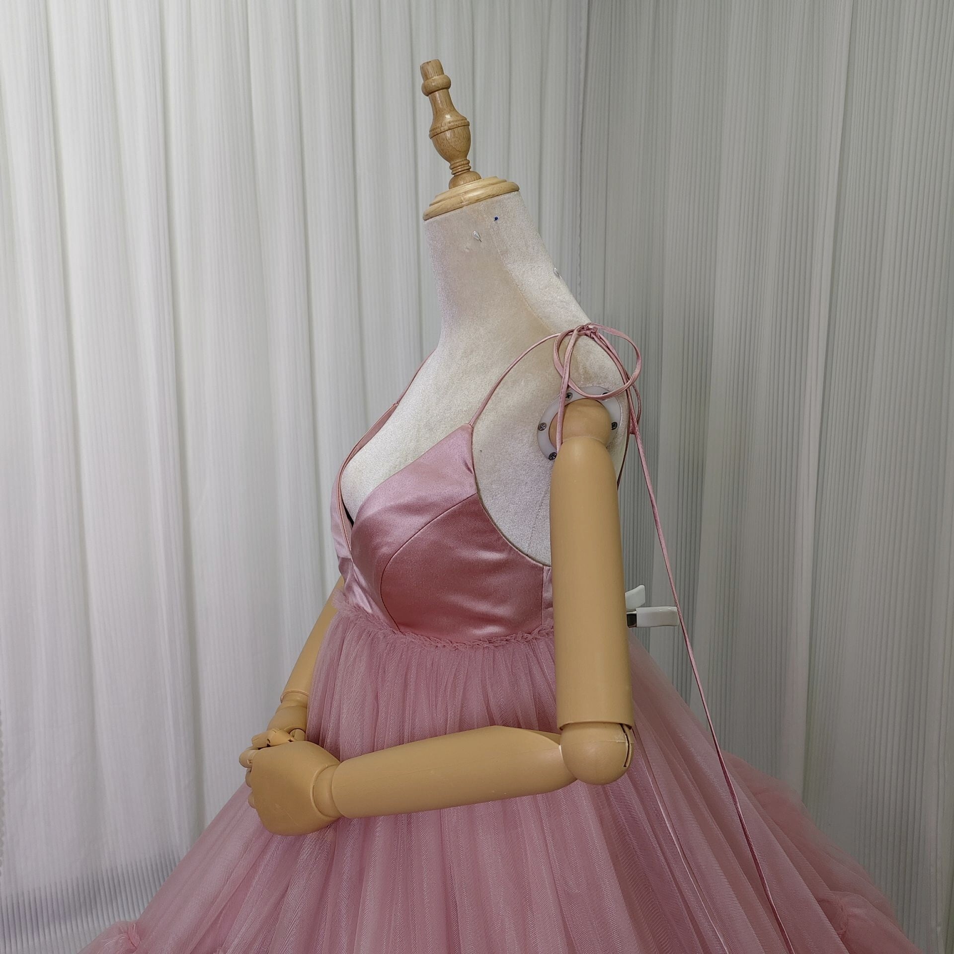 人気上昇!カラードレス ピンク キャミソール 柔らかく重ねたチュールスカート デザイン感 可愛い 花嫁