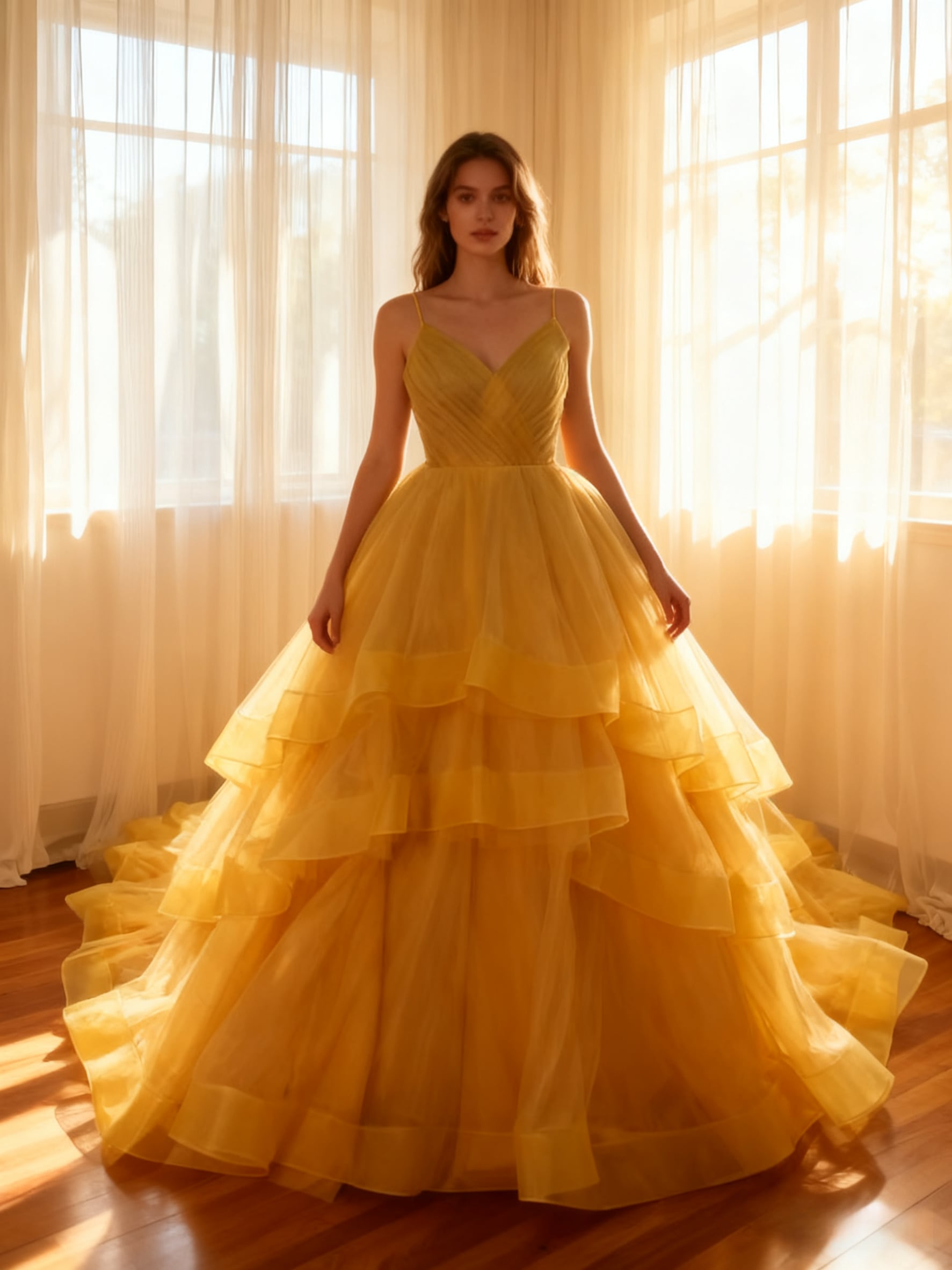 カラードレス キャミソール イエロー ラッフルフリル 可愛い 披露宴/前撮り