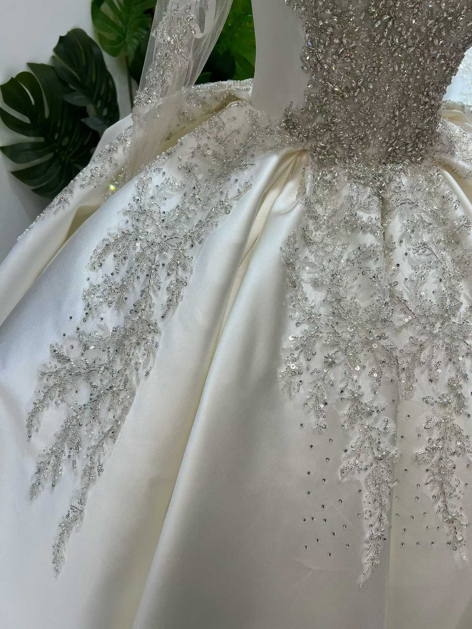ウェディングドレス ビジュードレス 韓国風ドレス ロングスリーブ Vネック プリンセスライン 花嫁