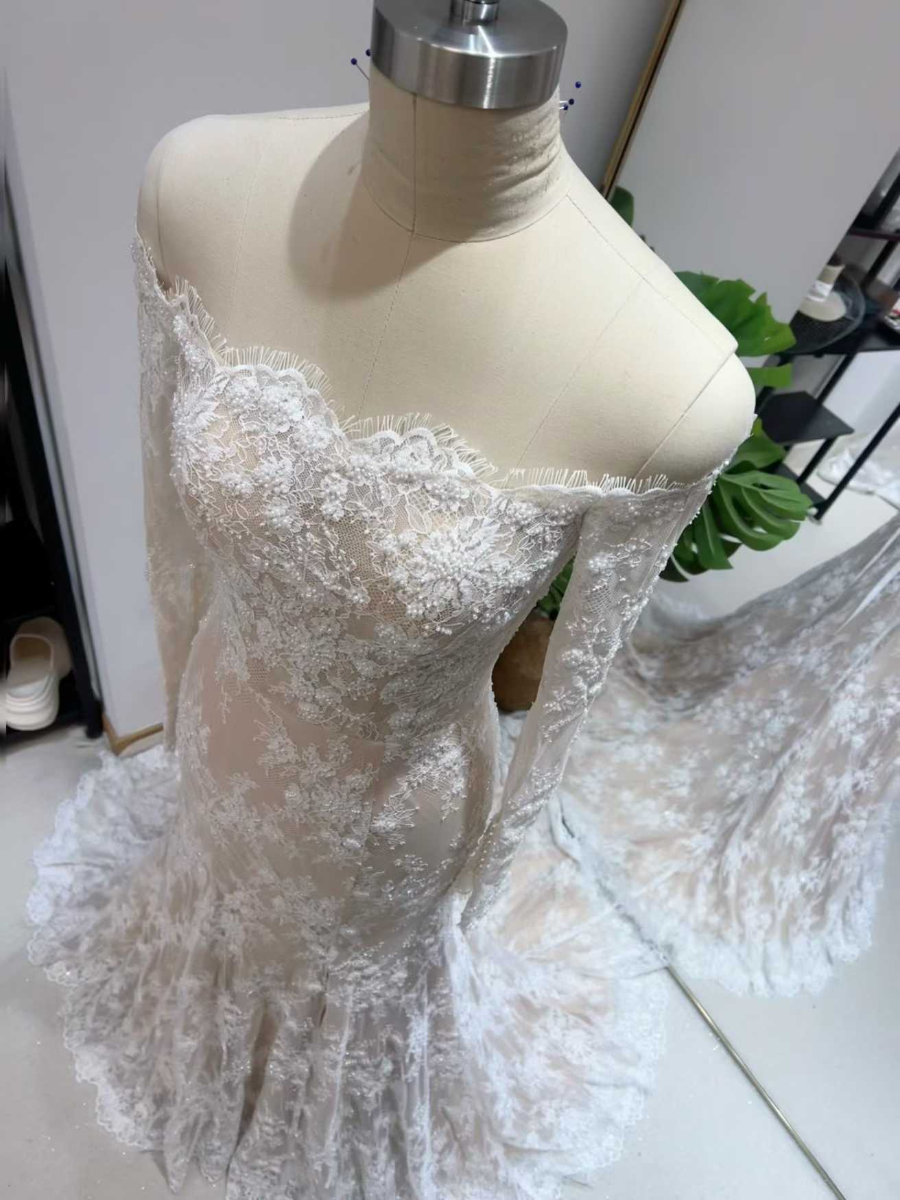 ウェディングドレス オフショルダー マーメイドライン ロングスリーブ ビーズ 贅沢な小花柄の総レース 拳式
