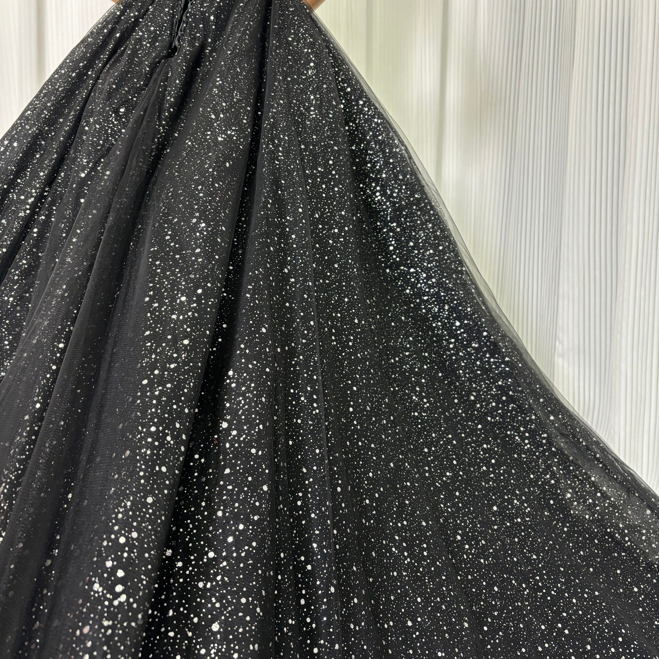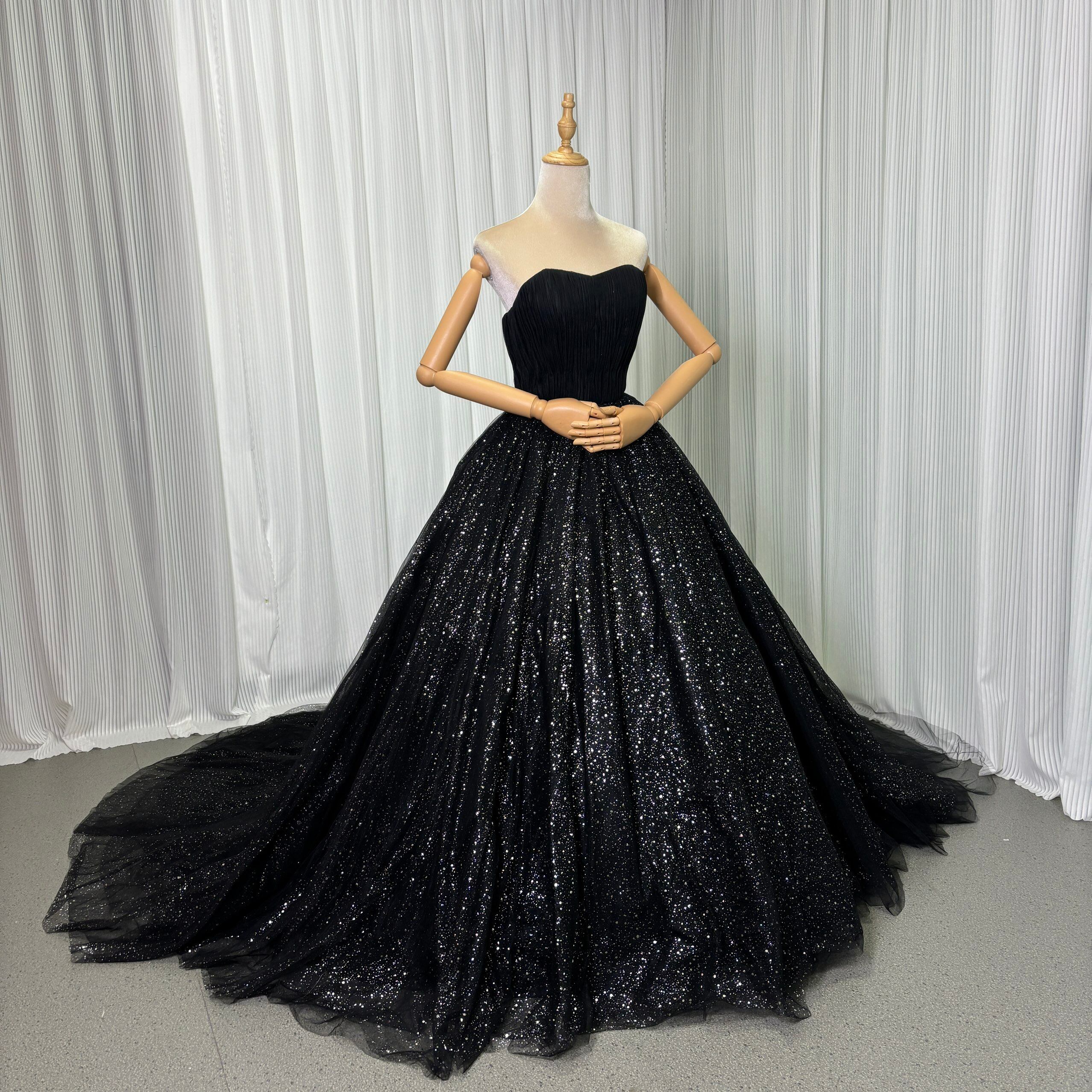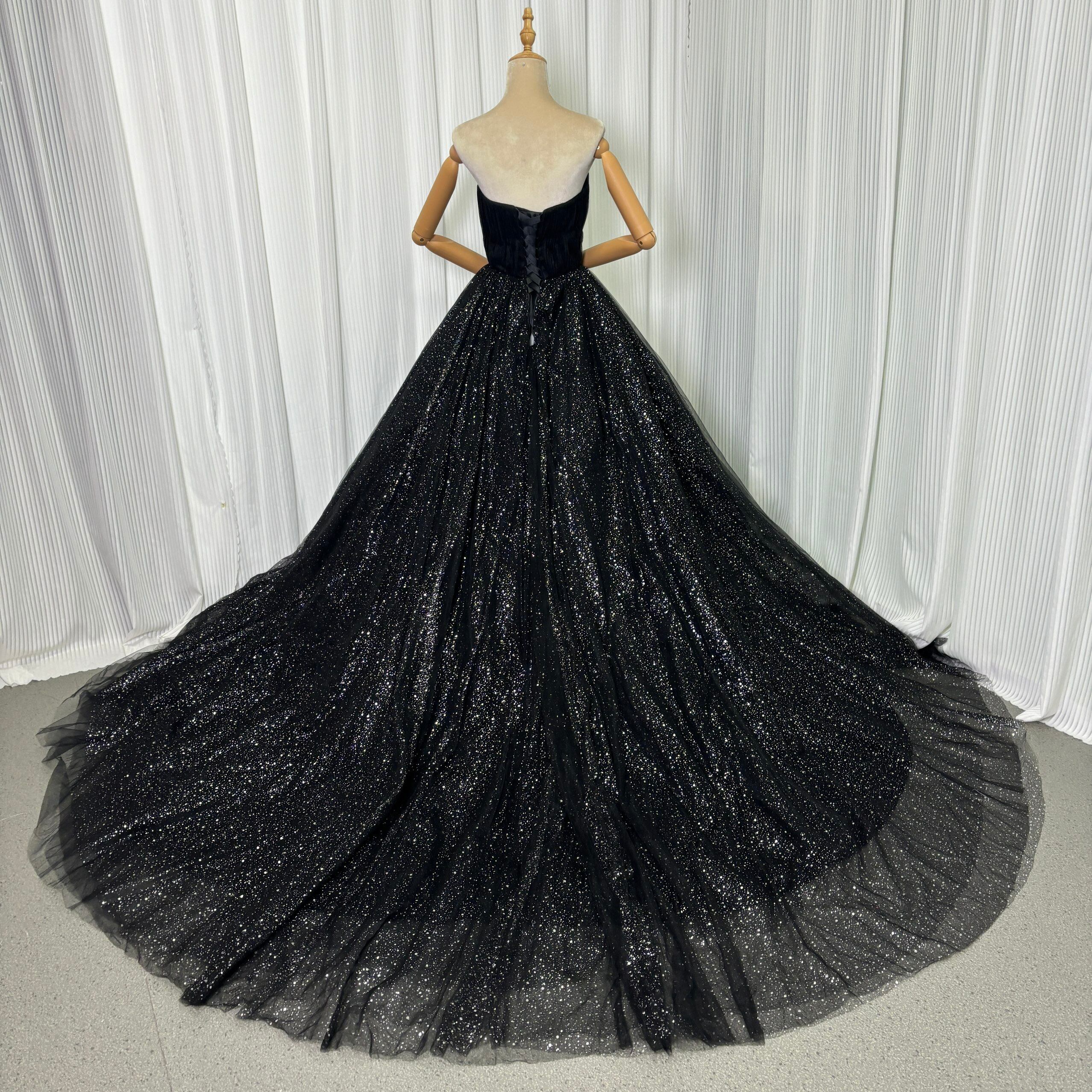 パーティードレス ブラック キラキラチュール プリンセスライン ロングトレーン 編み上げ 披露宴
