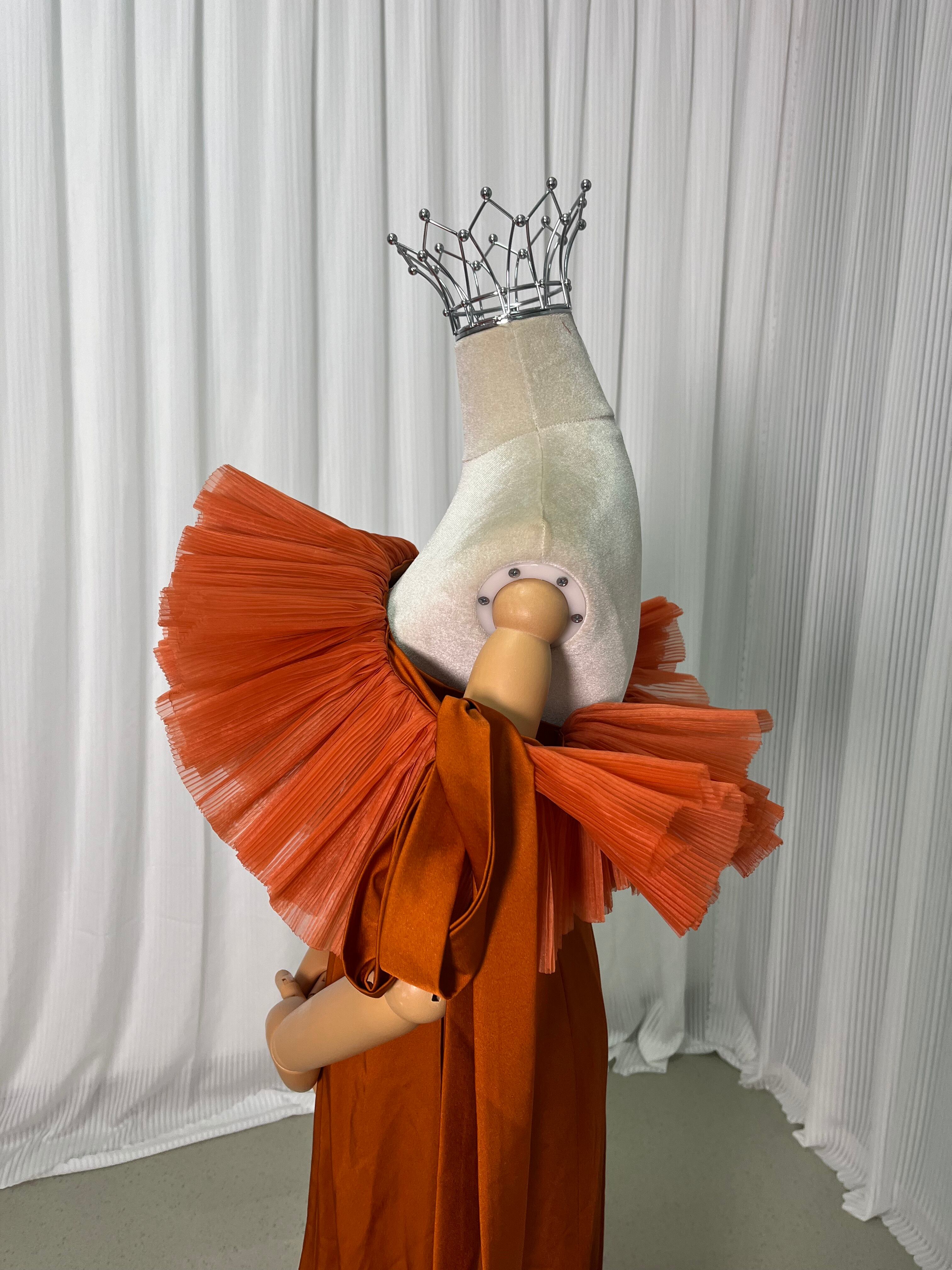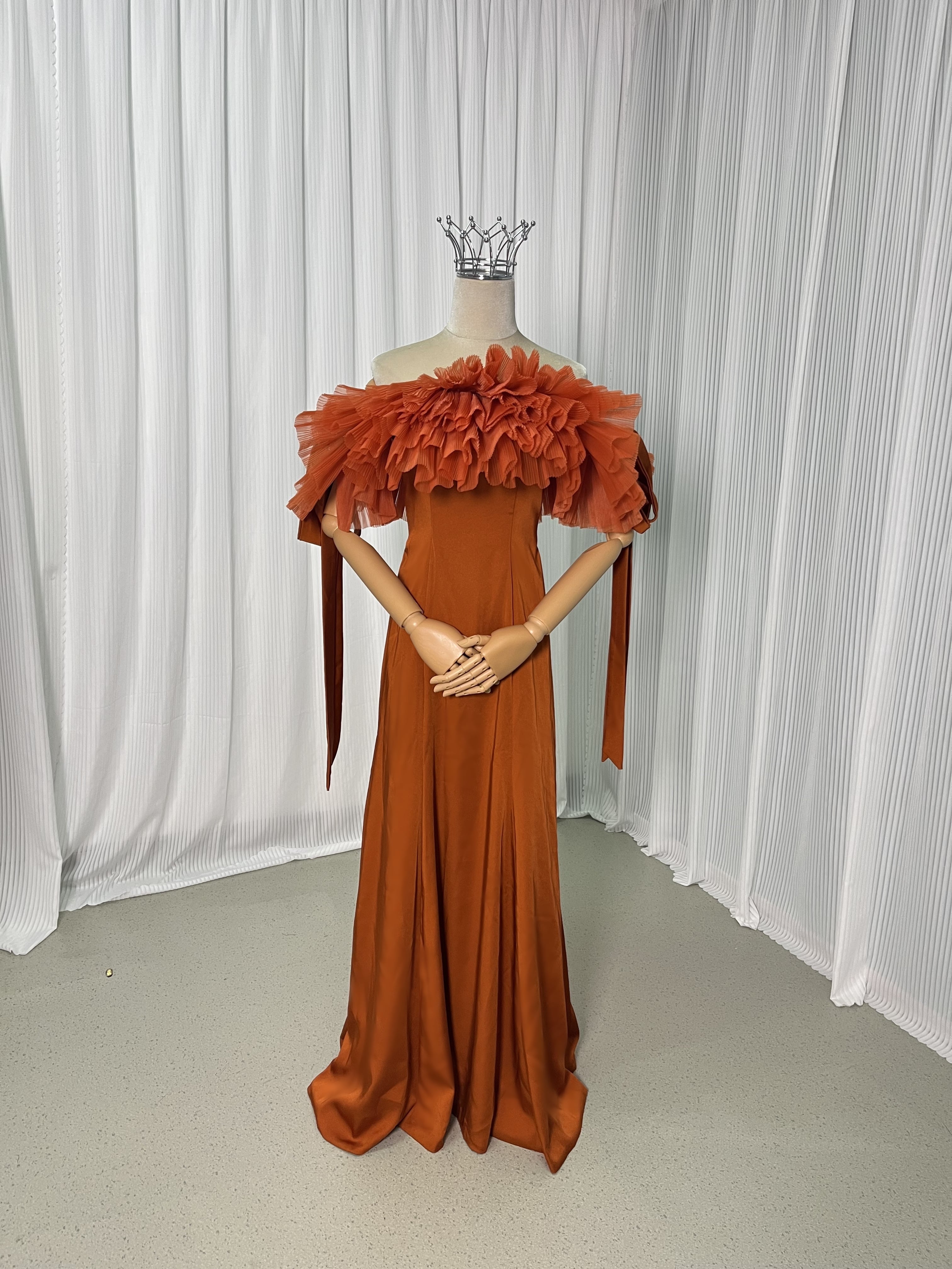 上品!パーティードレス オレンジ オフショルダー スレンダーライン ファスナー 二次会