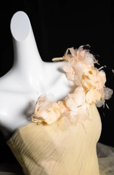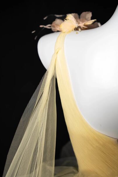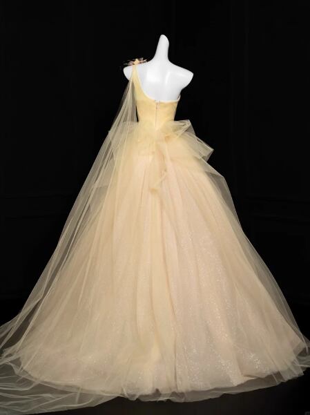 カラードレス イエロー ワンショルダー バラトレーン キラキラチュール フレアスカート 前撮り