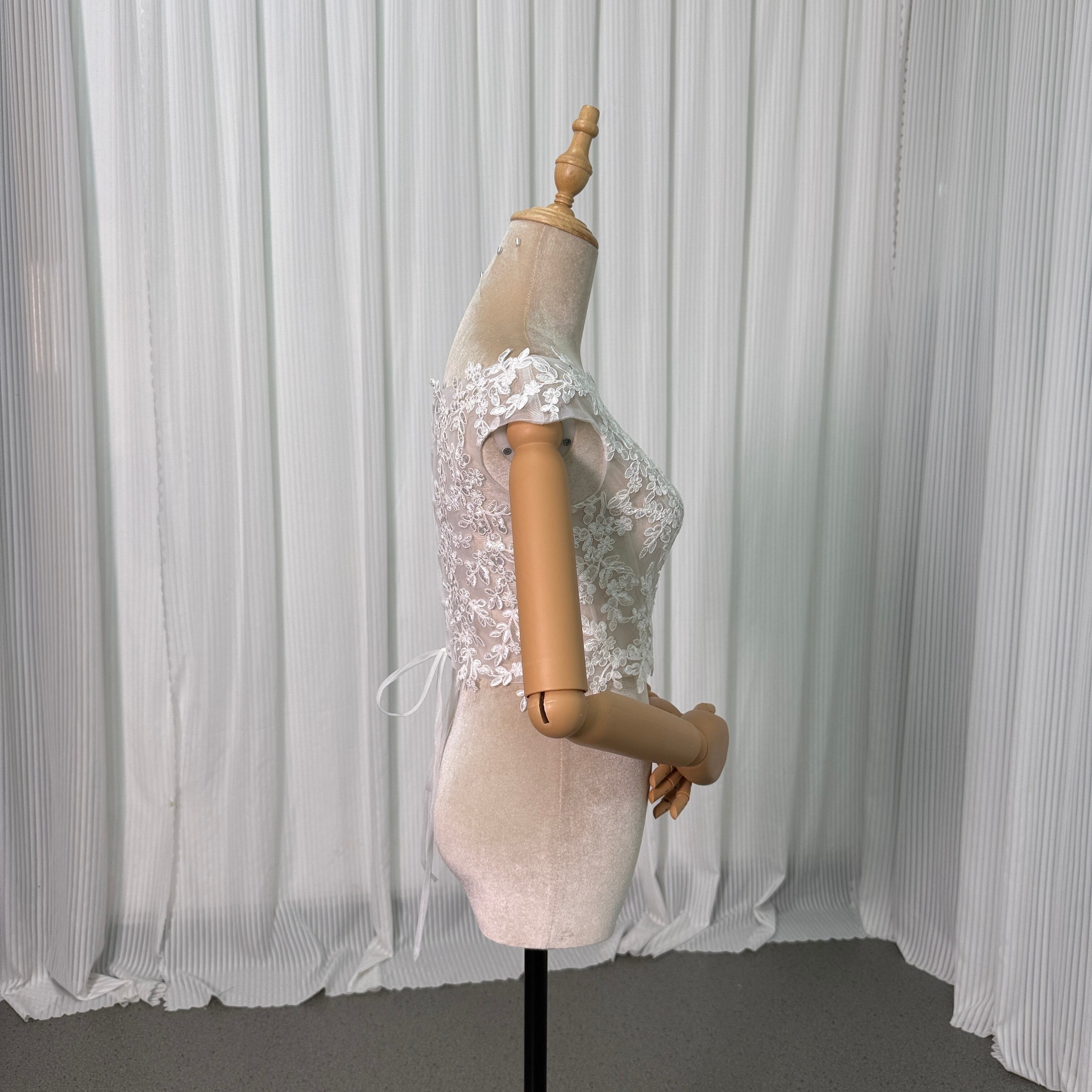 ボレロ ラウンドネック ノースリーブ 編み上げ 贅沢な小花柄の総レース 結婚式