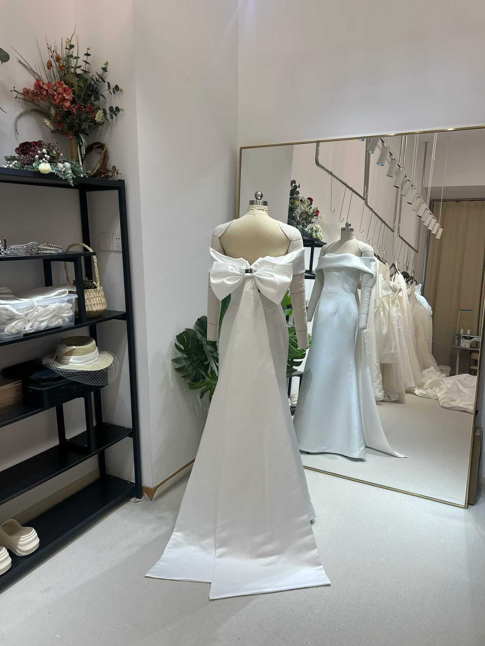 ウェディングドレス オフショルダー ふっくら柔らかなバックリボン 優雅なシルエット マーメイドライン 拳式