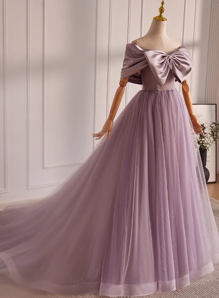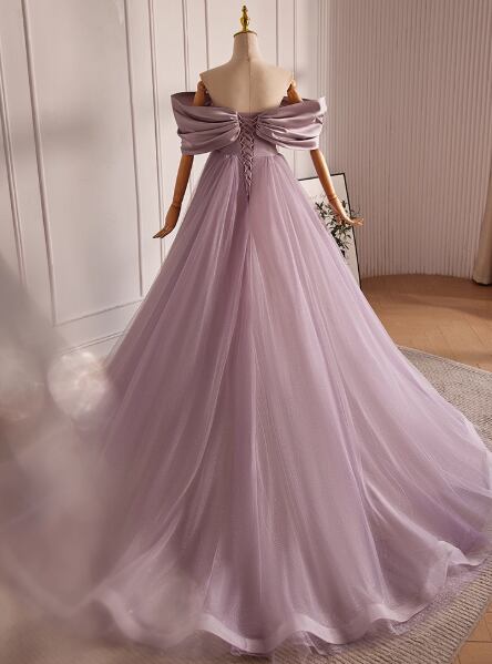 フランス風 カラードレス パープル オフショルダー 胸元フリル キラキラチュール 編み上げ 披露宴