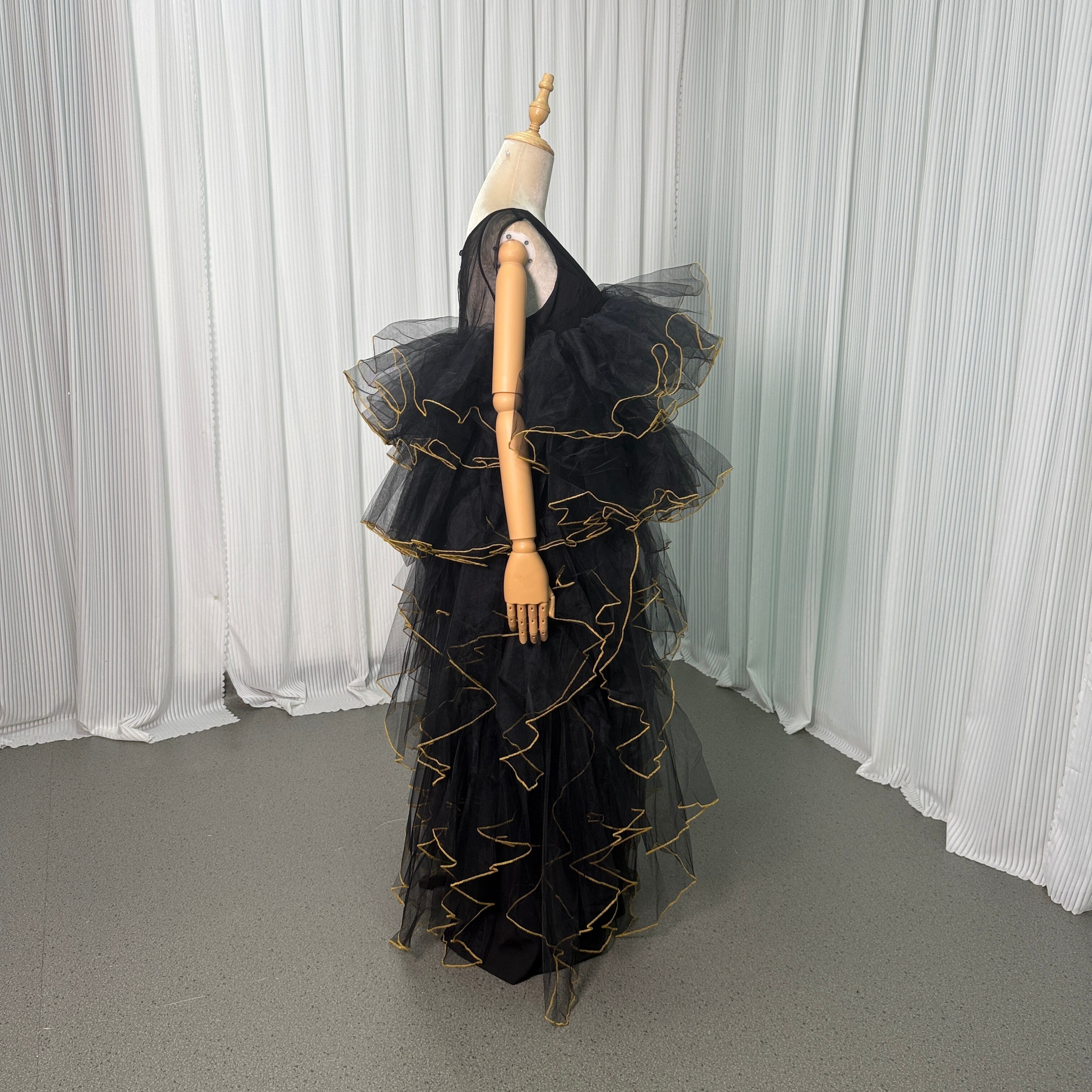 パーティードレス オーバードレス ブラック アシンメトリードレス ラッフルフリル ツーピース 音楽会 前撮り