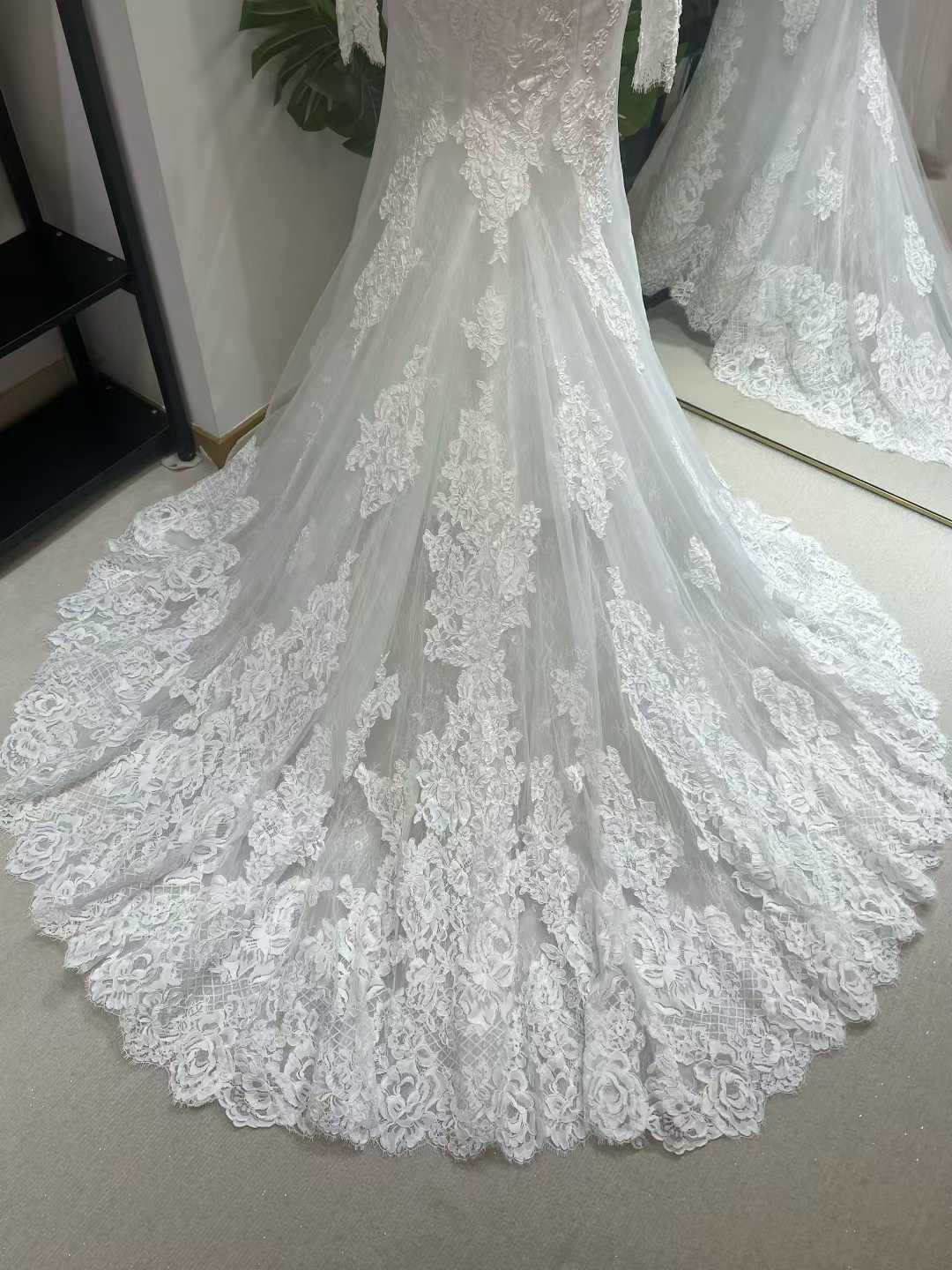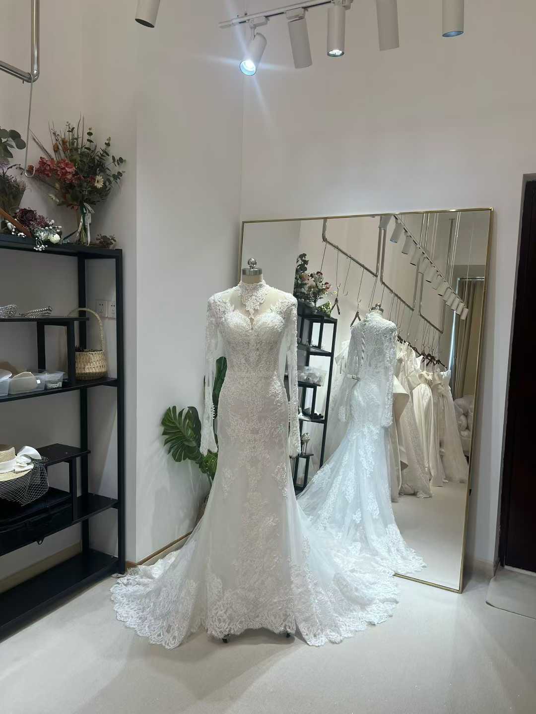 ウェディングドレス ハイネック 長袖 マーメイド 贅沢な小花総レース 結婚式 優雅なシルエット 韓国風ドレス