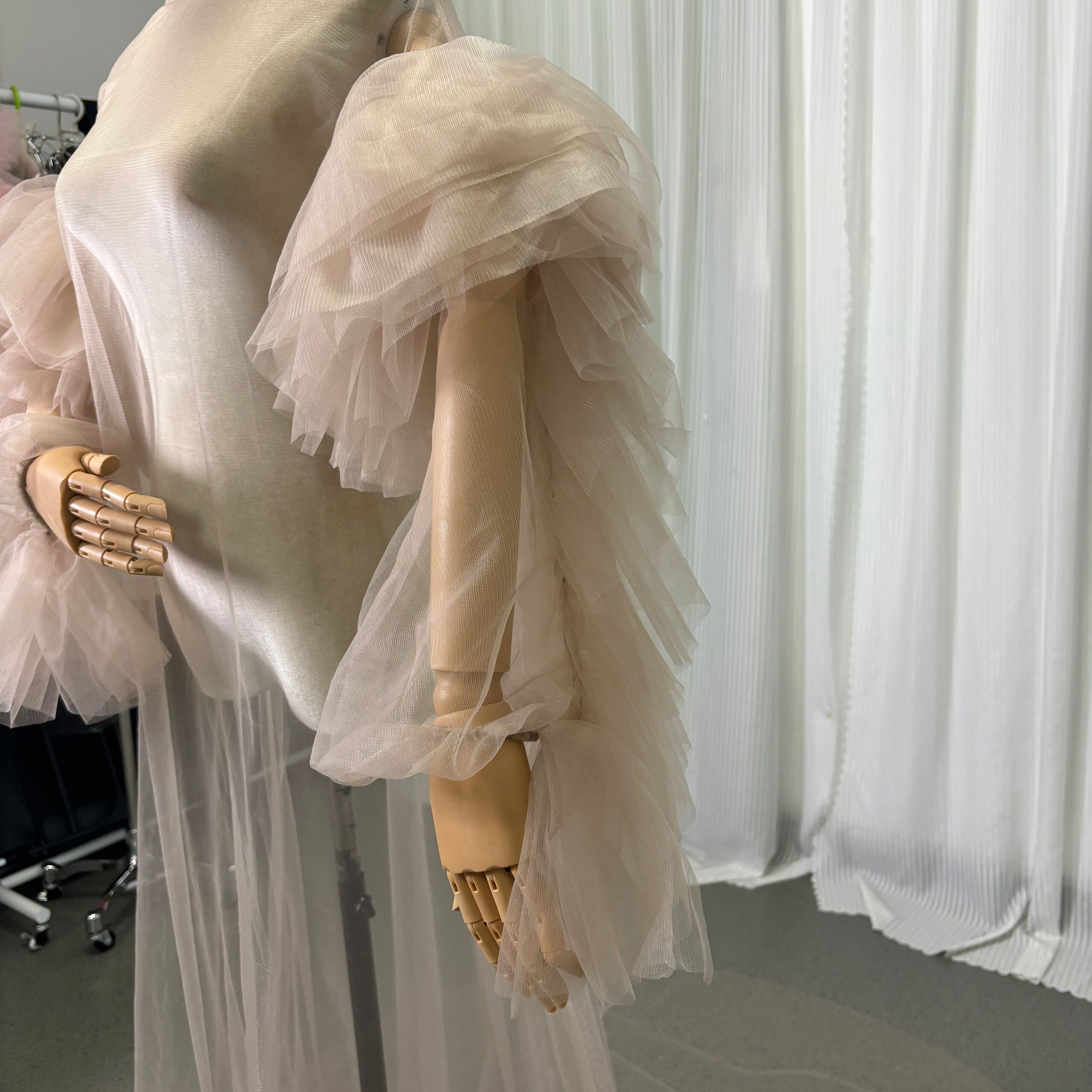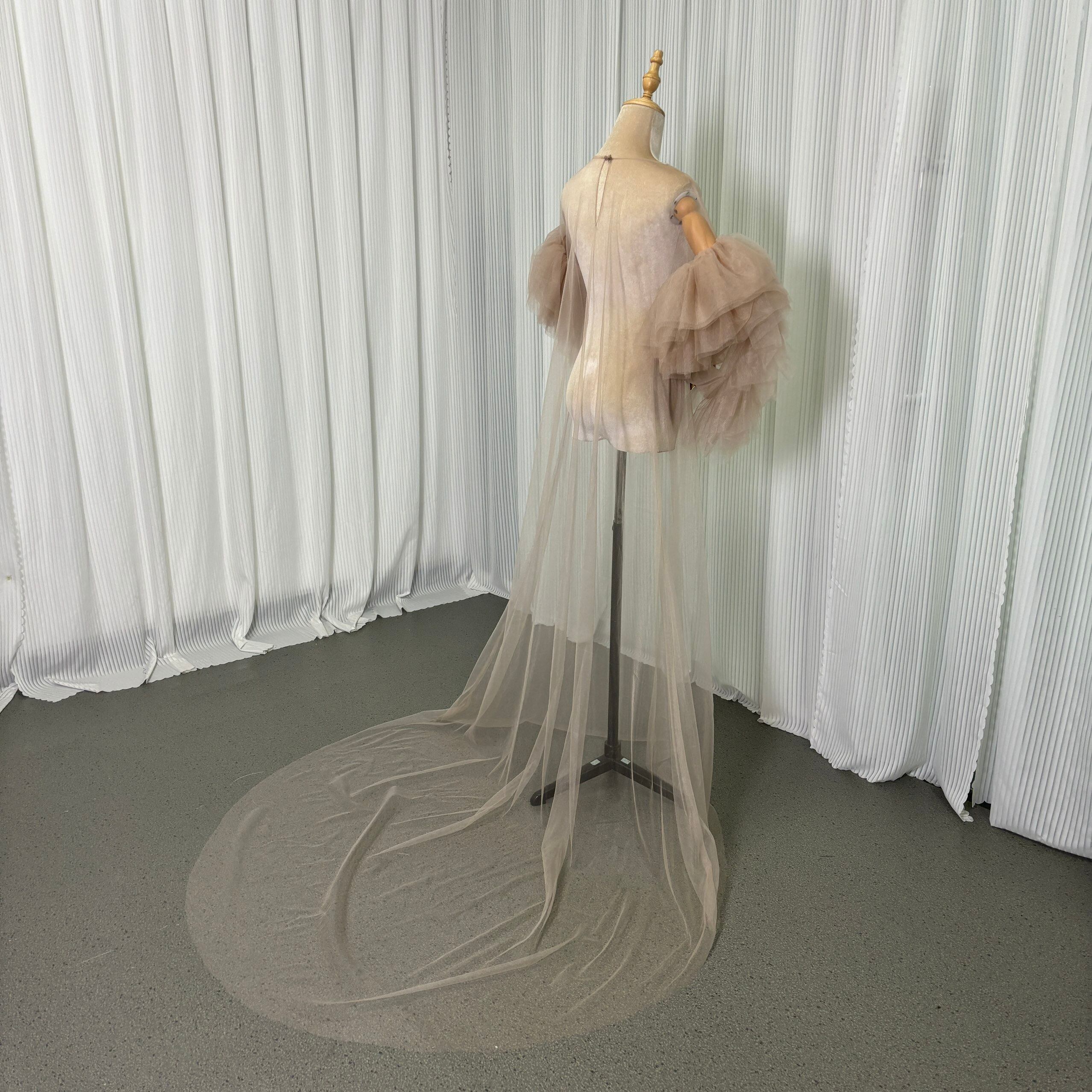 オーバードレス ブラウン 長袖 ラッフルフリル オートクチュール エレガント 前撮り