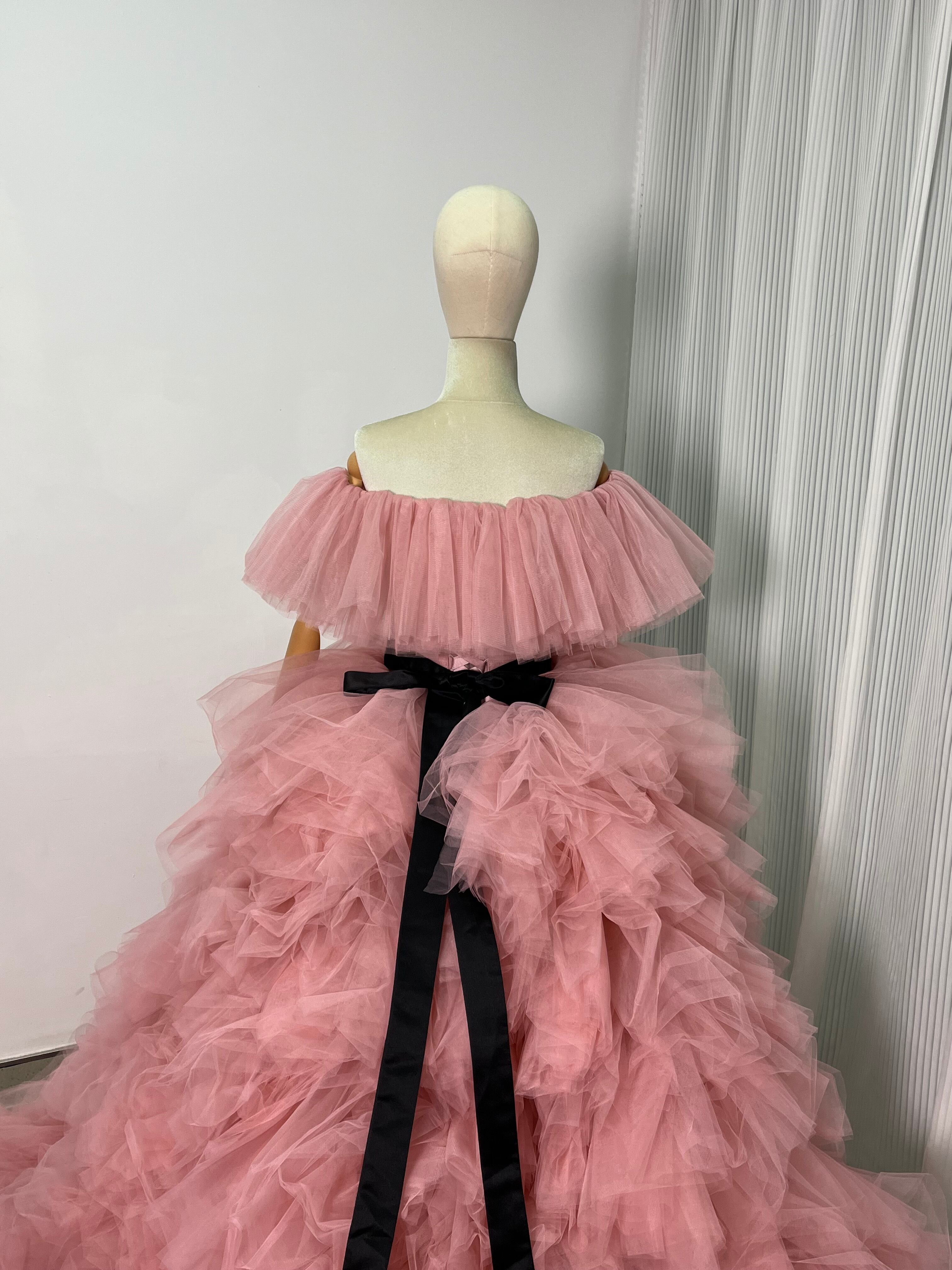 豪華!ピンク カラードレス 取り外しオフショルダー ボリュームドレス 編み上げ 花嫁 前撮り