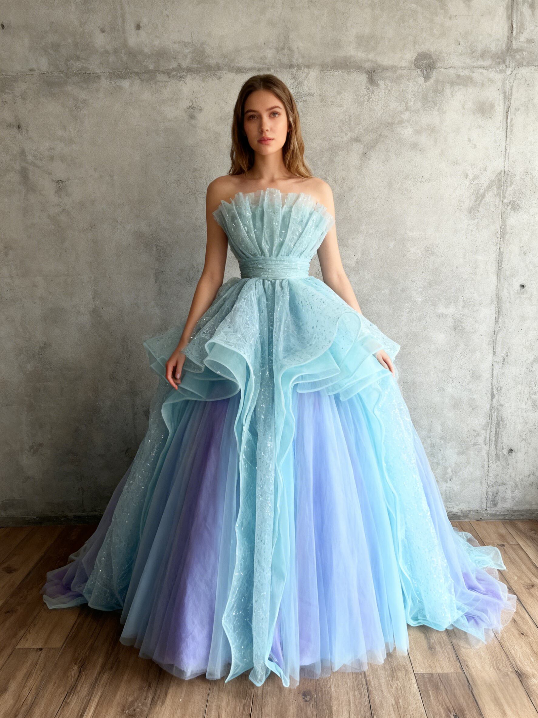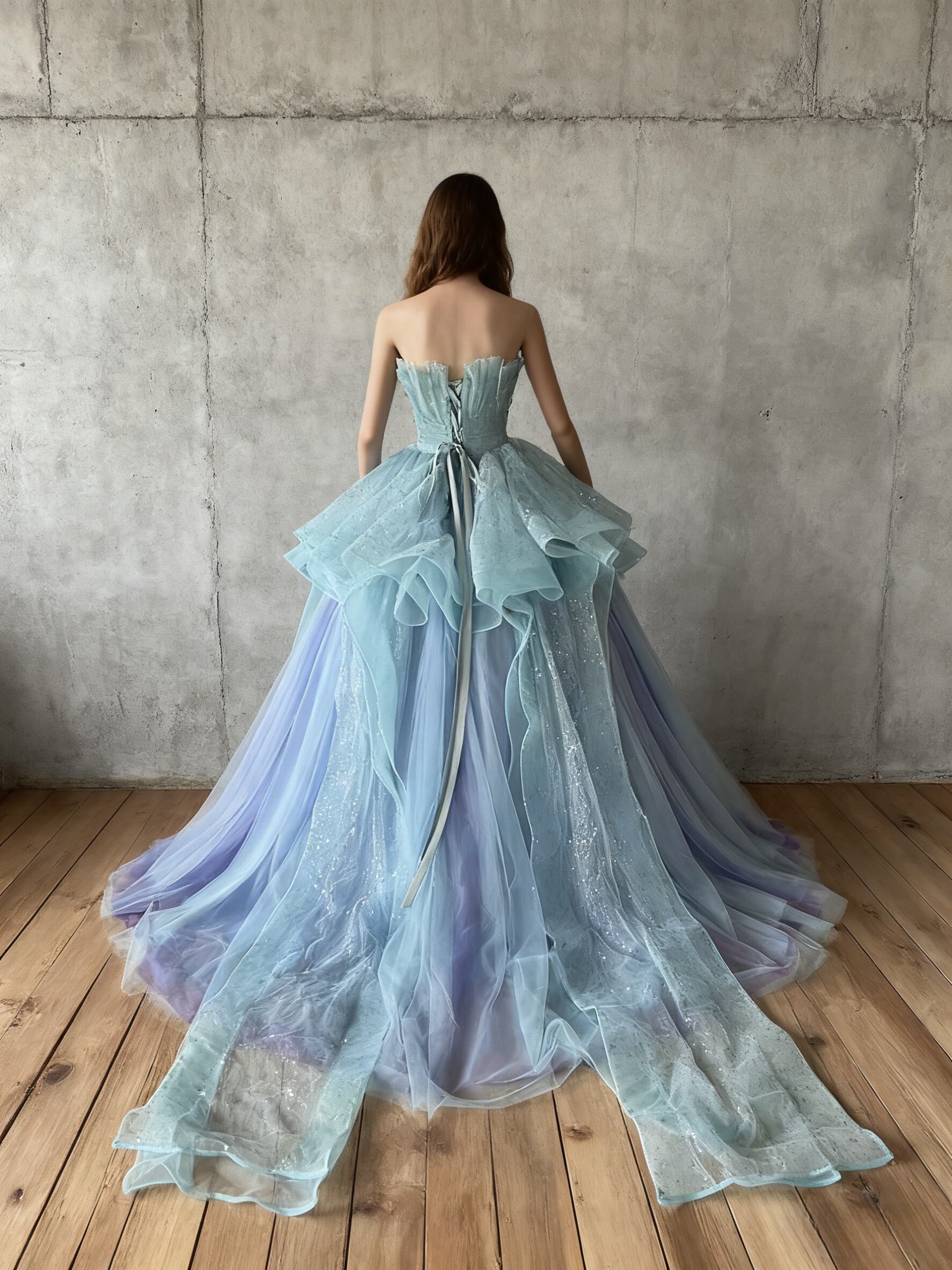 カラードレス ブルー グラデーション キラキラチュール ラッフルフリル 憧れのドレス 花嫁