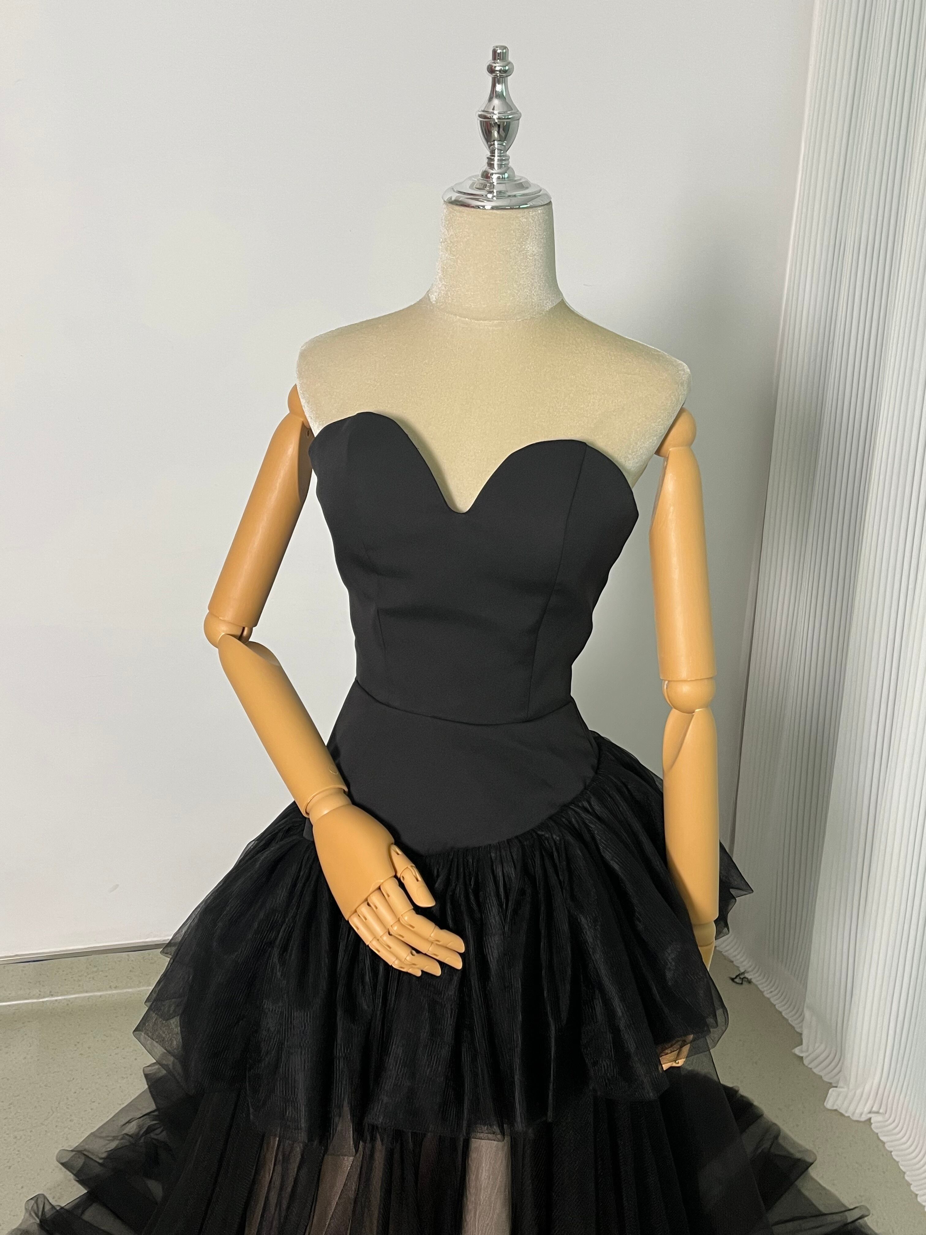 アシメパーティードレス ブラック ベアトップ チュールスカート デザイン感 セクシー 前撮り