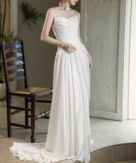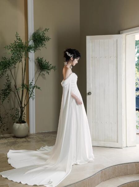ウェディングドレス 取り外しオフショルダー 優雅なシルエット 大人っぽい ハンドドレープ 披露宴