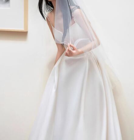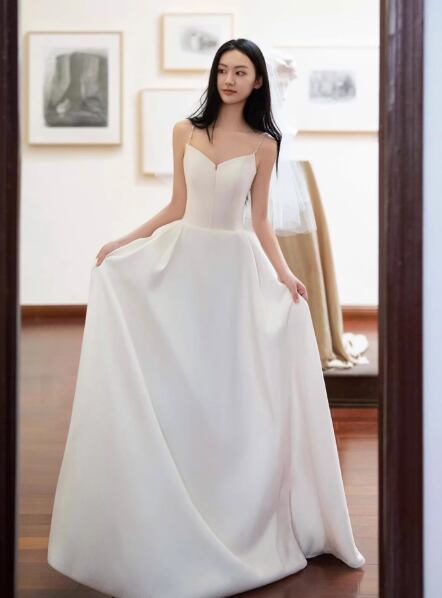 ウェディングドレス キャミソール 光沢サテン Aライン ロングトレーン エレガント 2次会/合コン