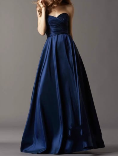 カラードレス ネイビー ベアトップ 光沢サテン Aライン 揺らめく裾 エレガント 披露宴