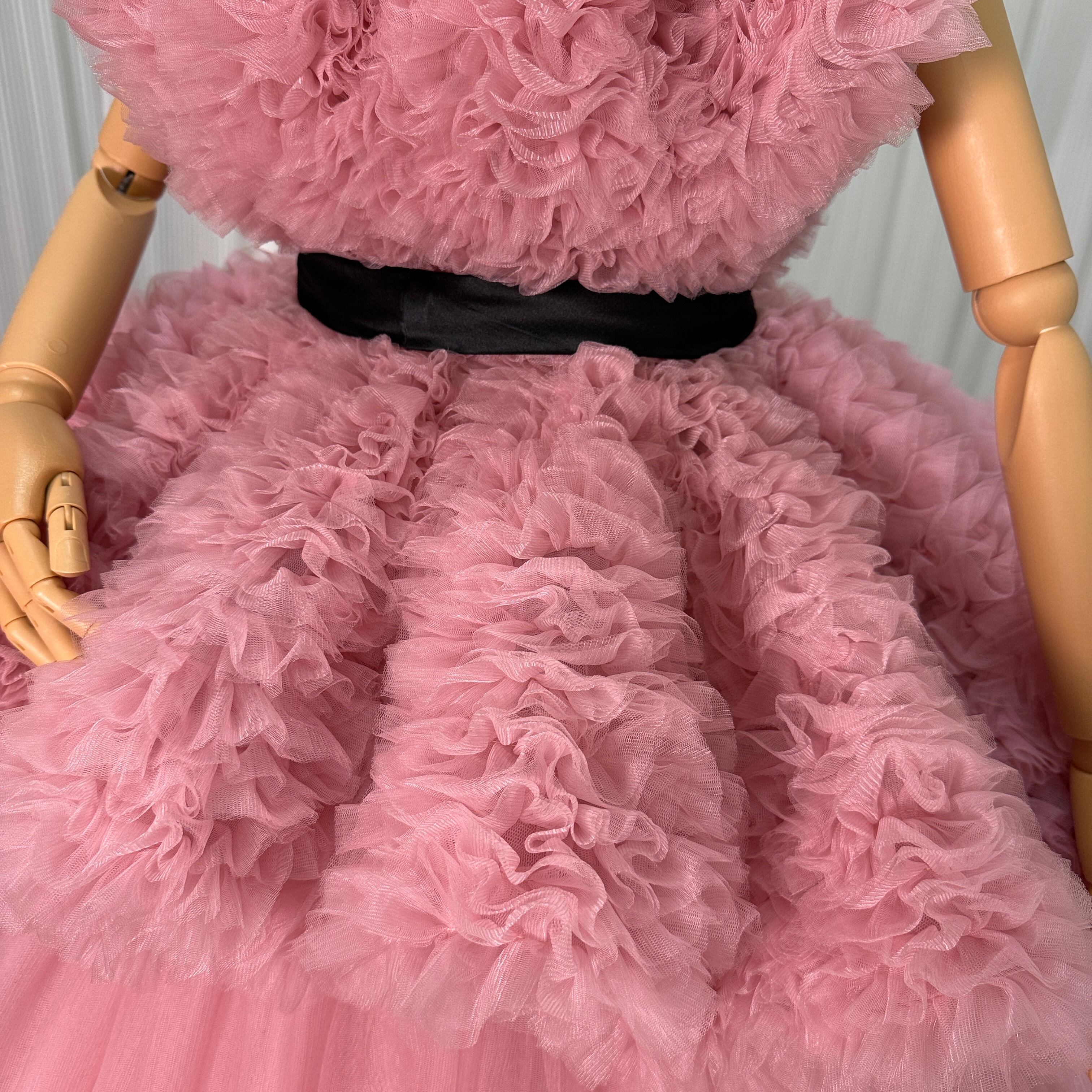 人気上昇!カラードレス ローズピンク プリンセスライン 取り外し オーバードレス ラッフルフリル 前撮り