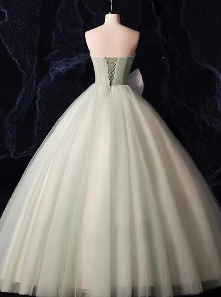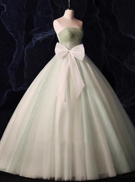 パーティードレス ミントグリーン ベアトップ プリンセスライン リボン キラキラチュール 演奏会