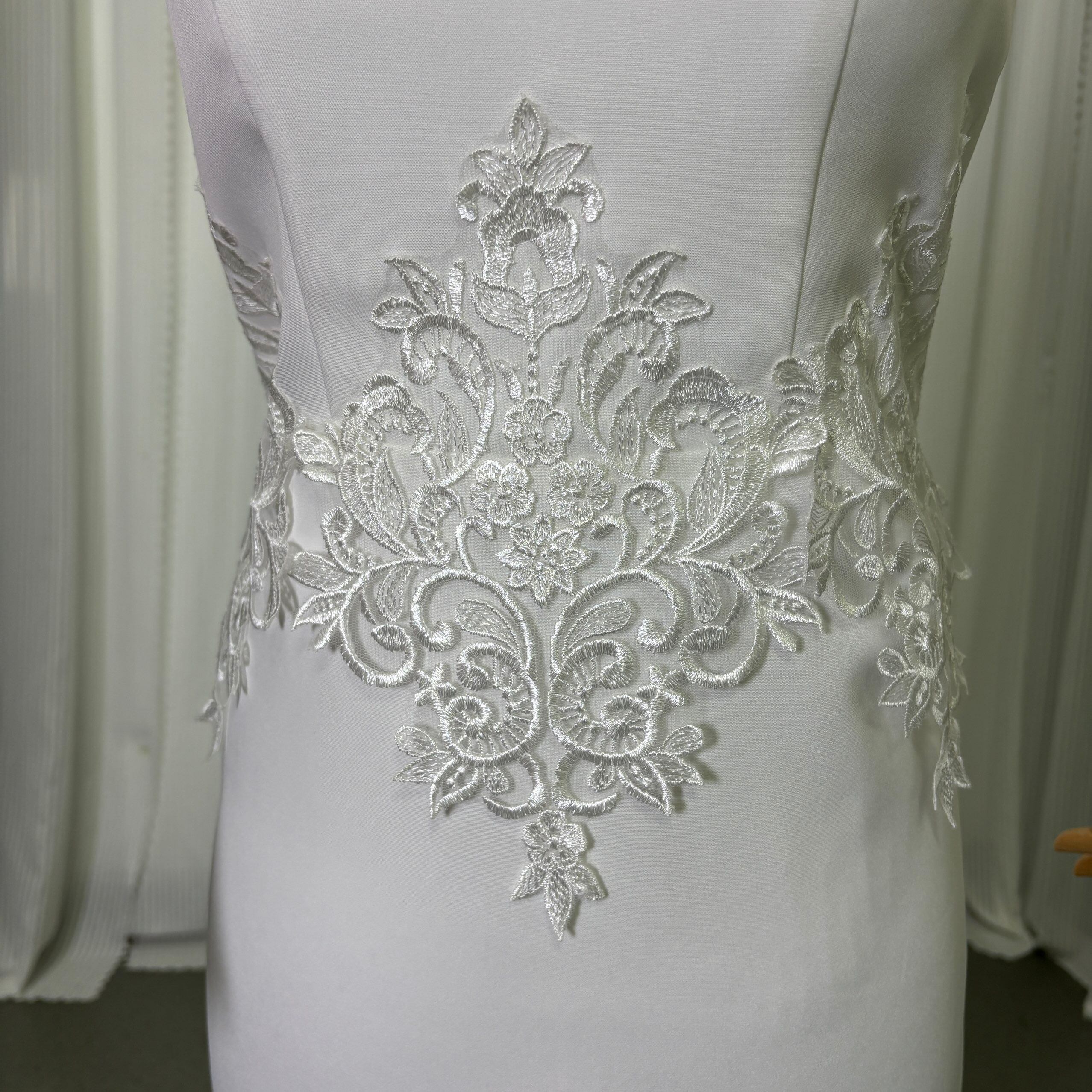 ウェディングドレス ベアトップ スレンダーライン クレープ生地 ミニトレーン 編み上げ 2次会