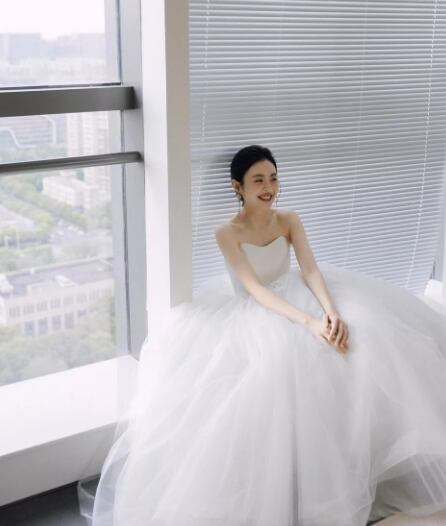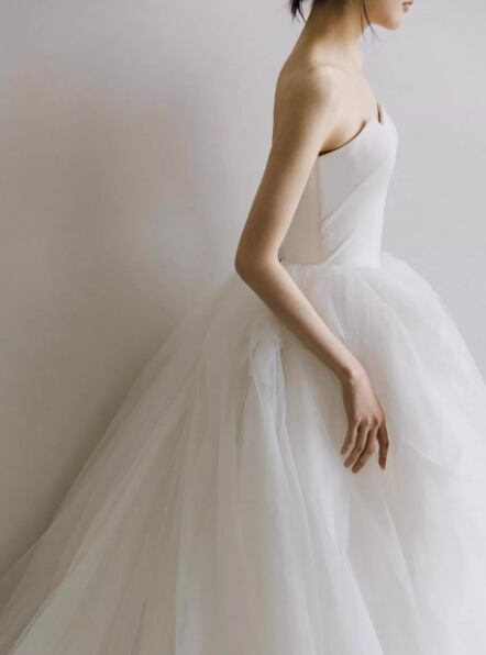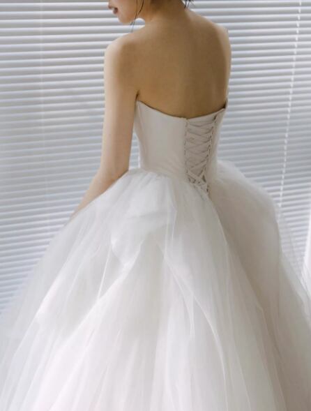 フランス風 ウェディングドレス ベアトップ ソフトチュール 憧れのドレス エレガント 編み上げ 結婚式