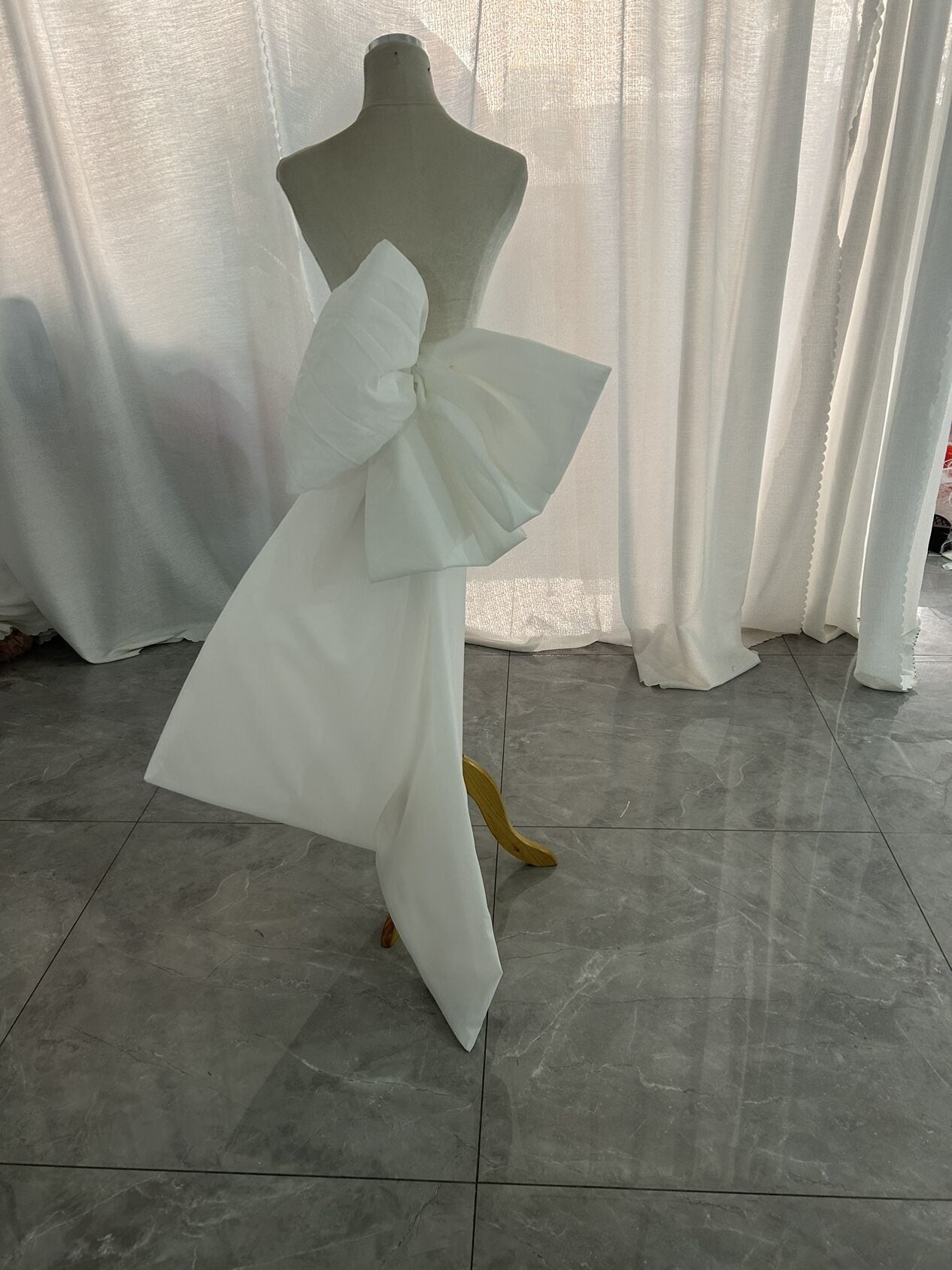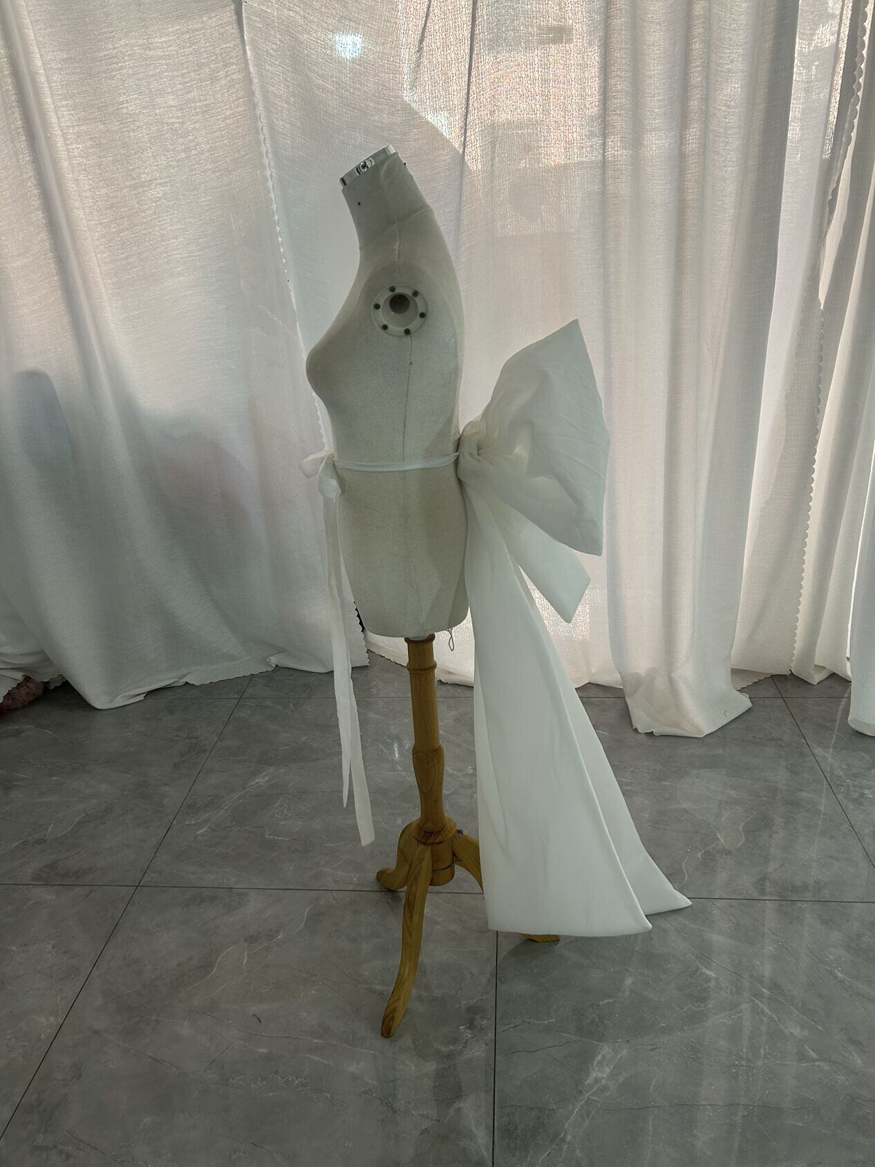 ふっくら柔らかなバックリボン ソフトオーガンジー 取り外し可能な オフホワイト オーダーメイド可能 結婚式