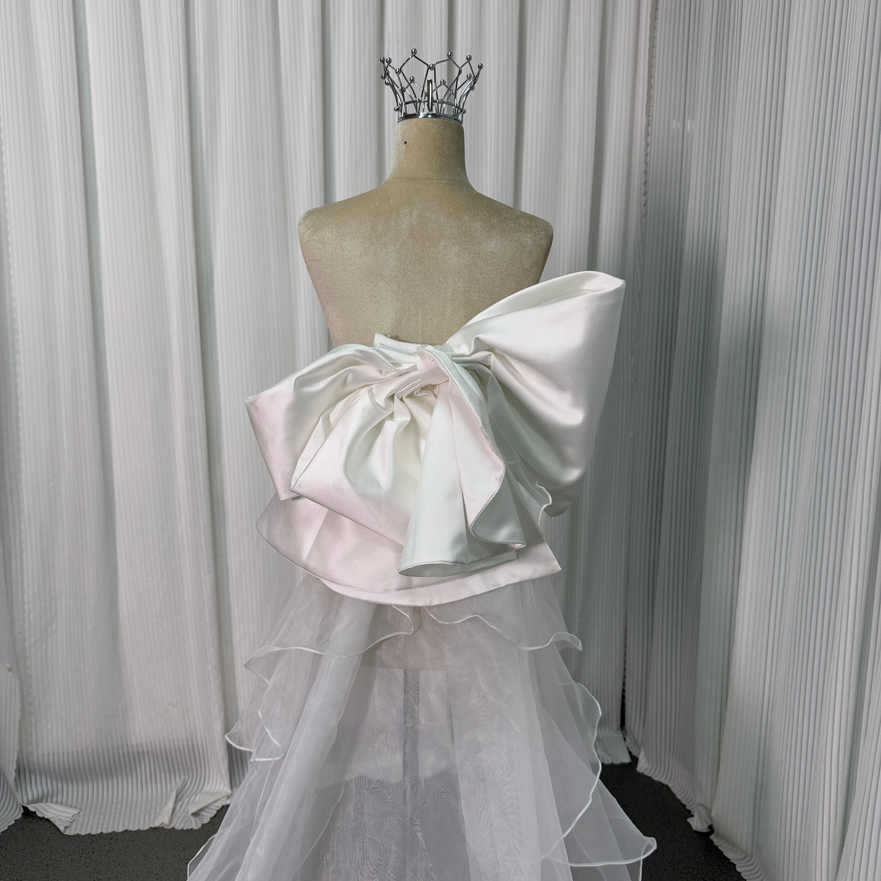 ふっくら柔らかなバックリボン 取り外し ロイヤルサテン 上質オーガンジー ミニトレーン 結婚式 前撮り