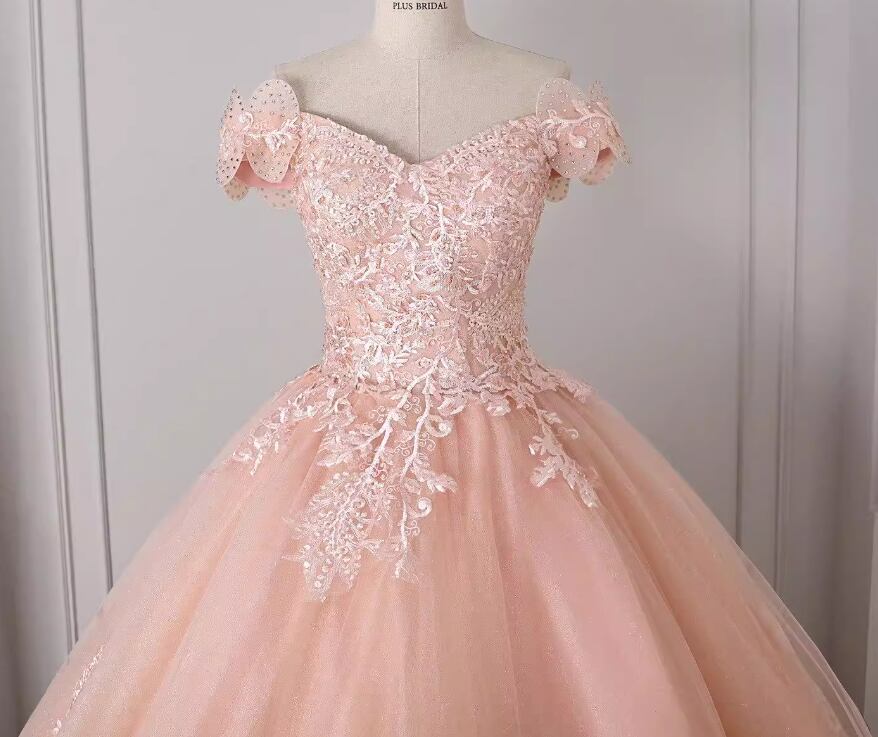 カラードレス 薄ピンク オフショルダー ビジュー エレガントレース チュールスカート 披露宴