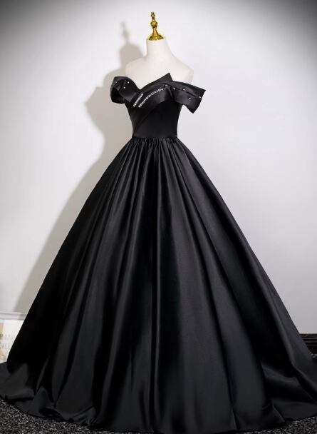 パーティードレス ブラック オフショルダー ビジュー 光沢サテン 大人っぽい 発表会