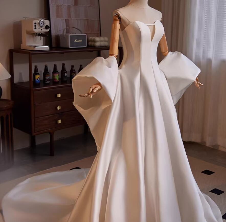 ウェディングドレス ベアトップ ドロップショルダー 優雅なシルエット ロングトレーン 編み上げ 拳式/前撮り