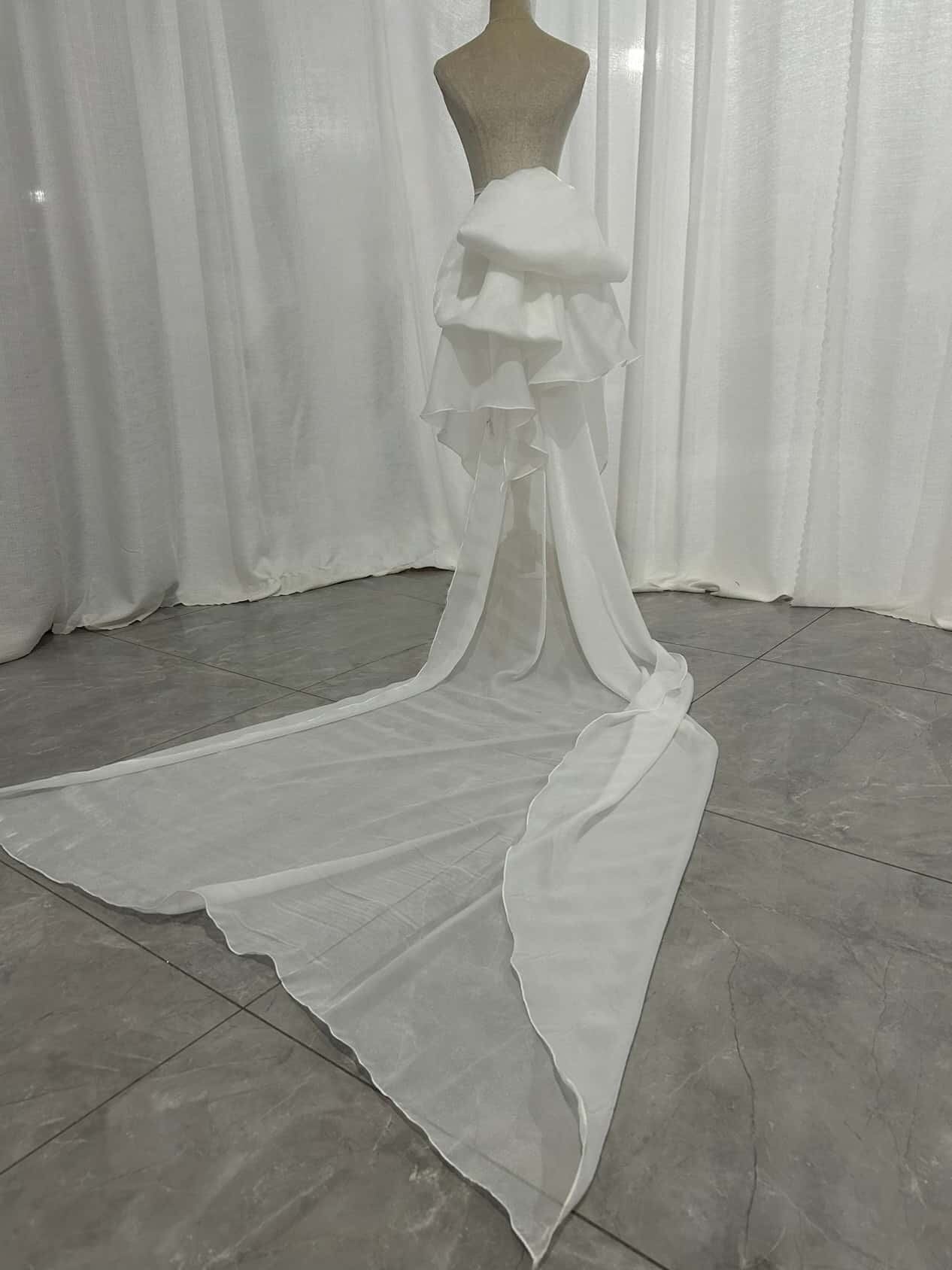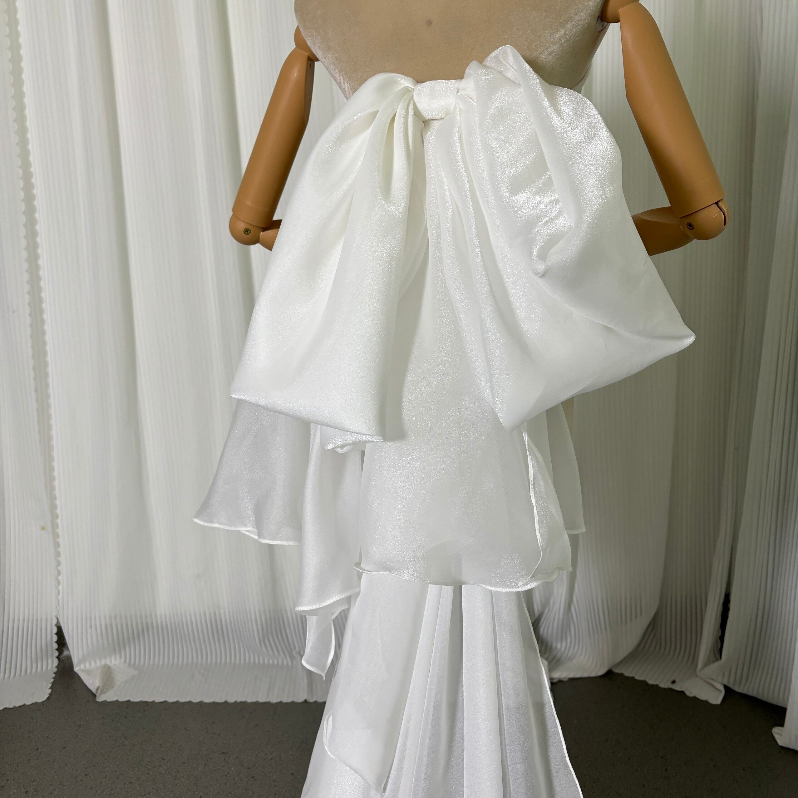 ふっくら柔らかなバックリボン オフホワイト ソフトオーガンジー ロングトレーン 結婚式 前撮り