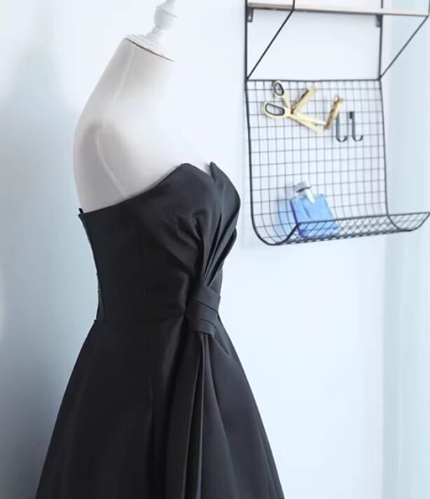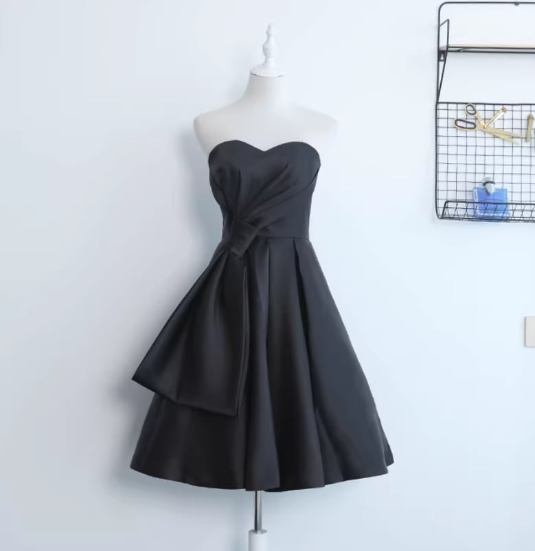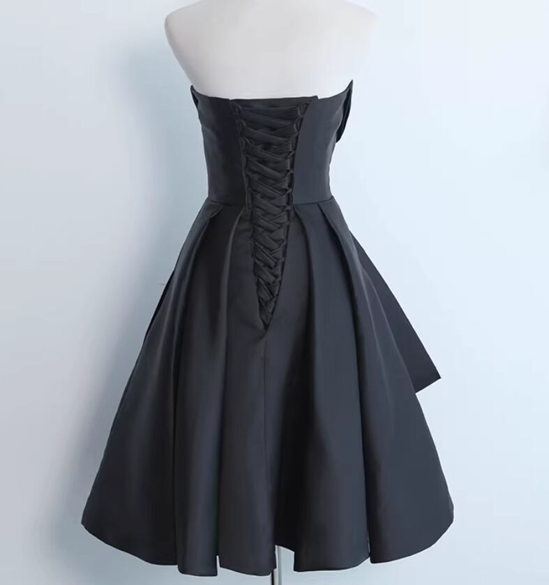 パーティードレス ブラック ベアトップ ミニワンピース ロイヤルサテン セクシー 発表会