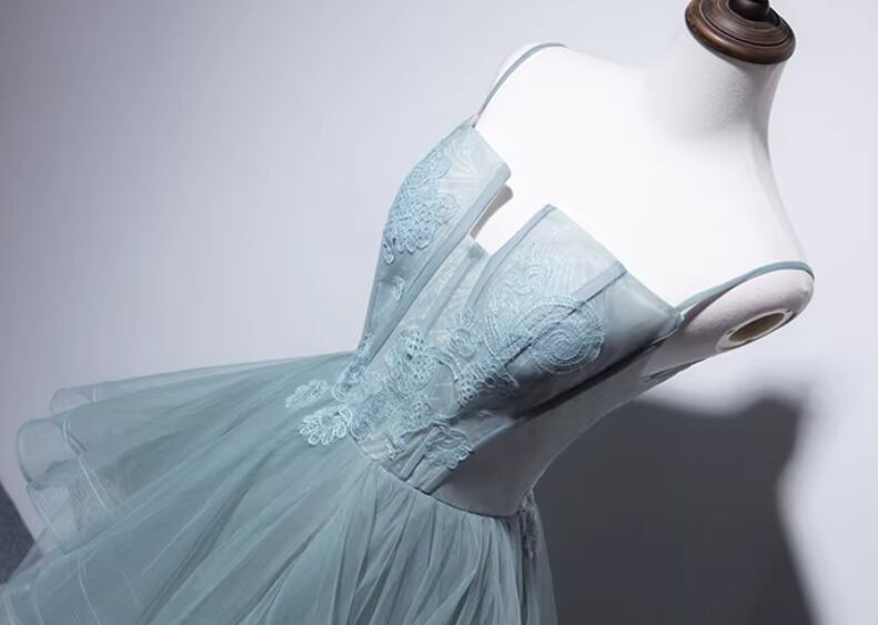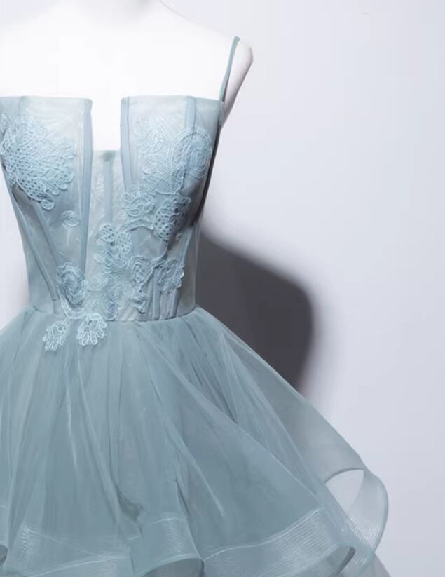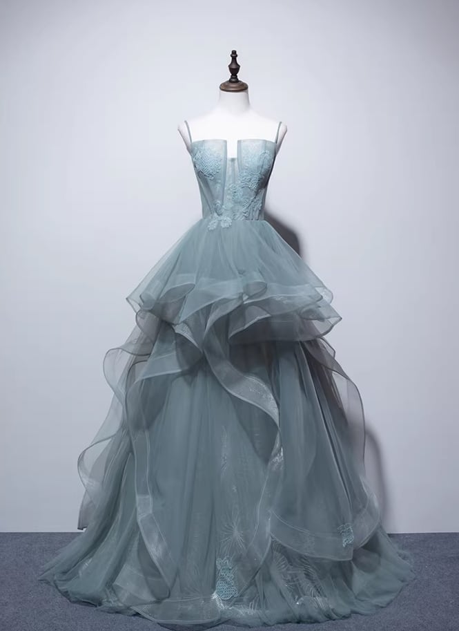 カラードレス ブルーグレー キャミソール リーフ刺繍 ラッフルフリル 優雅なシルエット 編み上げ 前撮り