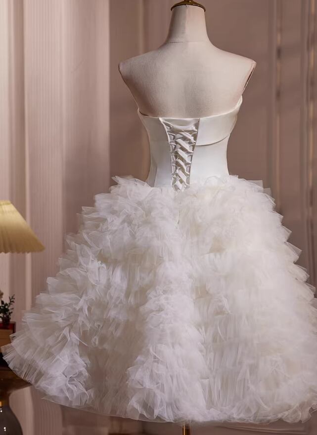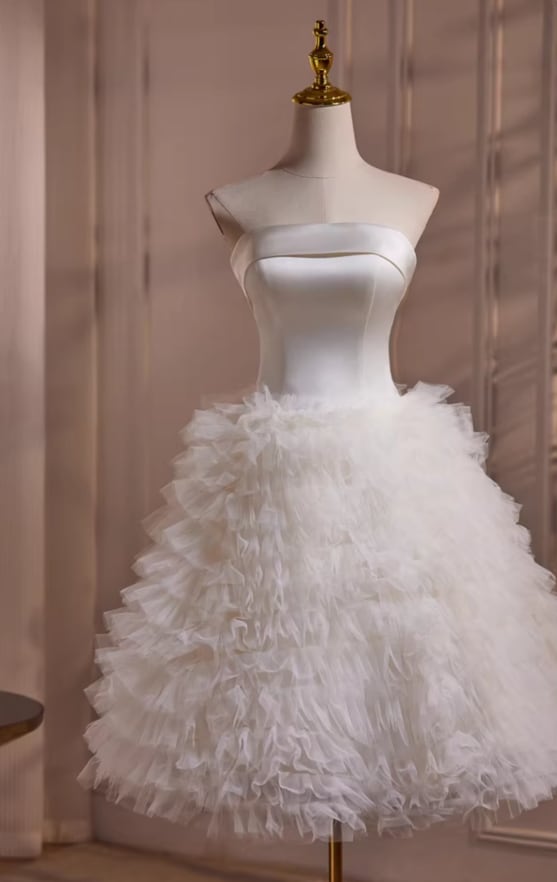 ウェディングドレス ベアトップ ミニワンピース もこもこドレス 前撮り 抜群のおしゃれ見え