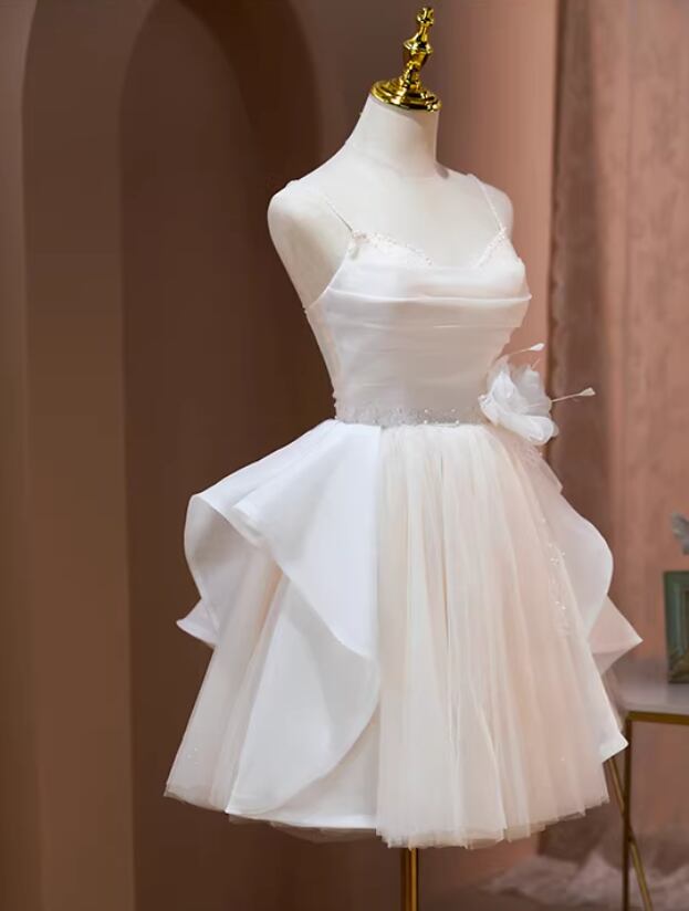 ウェディングドレス キャミソール パール プリンセスライン ミニワンピース 編み上げ 可愛い 披露宴
